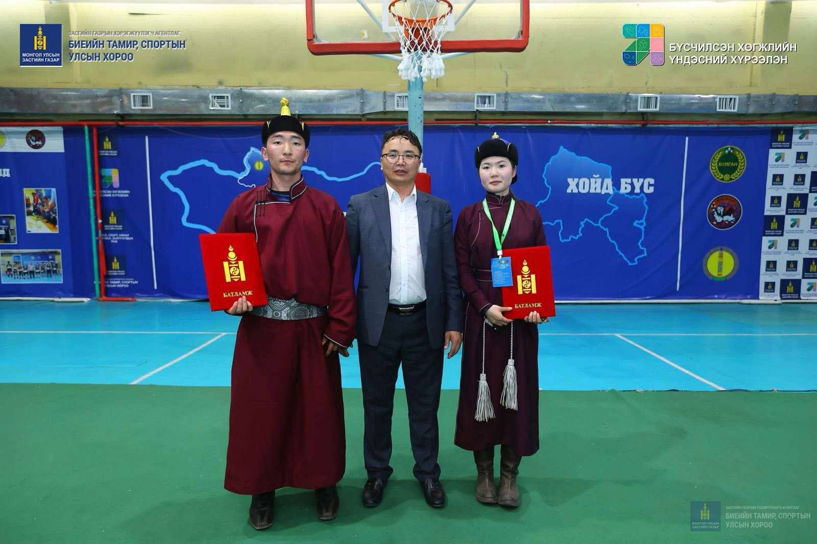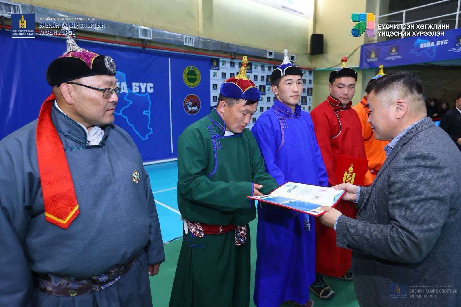 БҮСИЙН СПОРТЫН ИХ НААДМЫН ХОЙД БҮСИЙН ТЭМЦЭЭНД АМЖИЛТ ГАРГАСАН ТАМИРЧИД ШИГШЭЭ ШАТАНД ӨРСӨЛДӨХ БАТЛАМЖАА ГАРДАН АВЛАА.