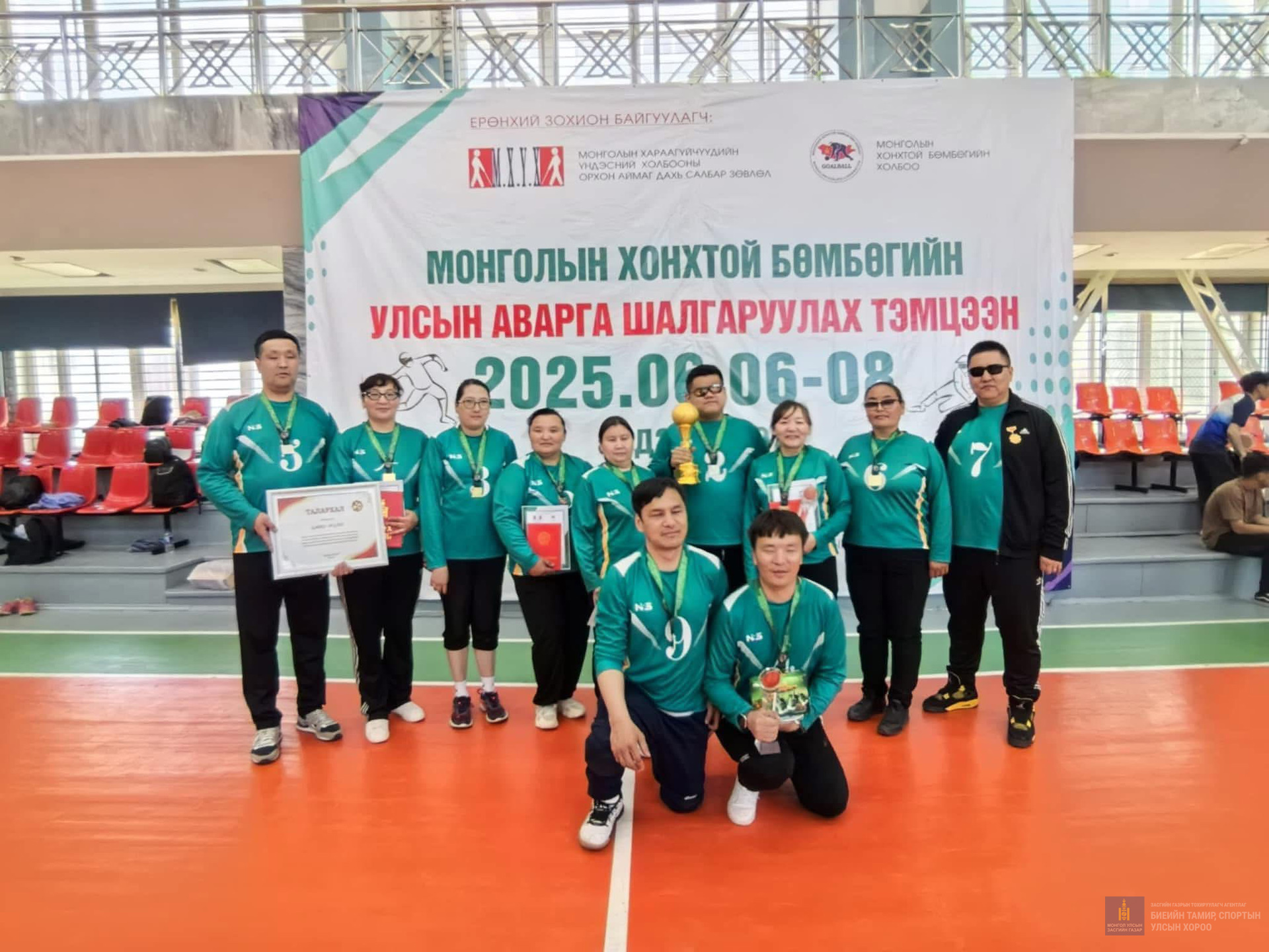 Хонхтой бөмбөгийн 9 дэх удаагийн улсын аварга шалгаруулах тэмцээн 2025 оны 06 дугаар сарын 07-08-ны өдрүүдэд Орхон аймагт амжилттай зохион байгуулагдан Орхон, Завхан, Булган, Хэнтий, Дорнод, Говьсүмбэр, Дундговь, Төв аймаг, Улаанбаатар хот Монголын Хараагүйчүүдийн үндэсний холбооны эрэгтэй 10, эмэгтэй 6 багийн нийт 90 тамирчин оролцсон.