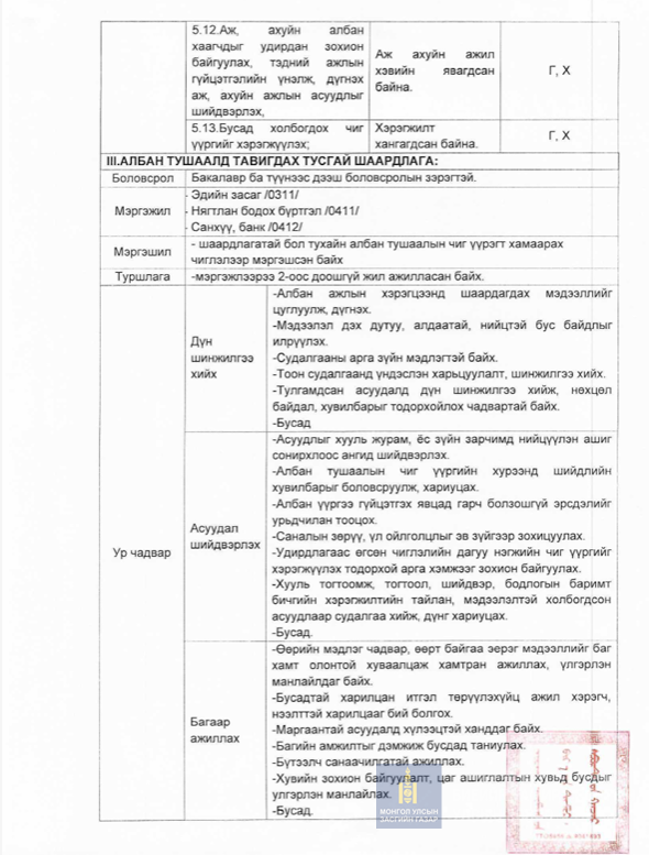 Ерөнхий нягтлан бодогч, аж ахуй албаны даргын албан тушаалын тодорхойлолт