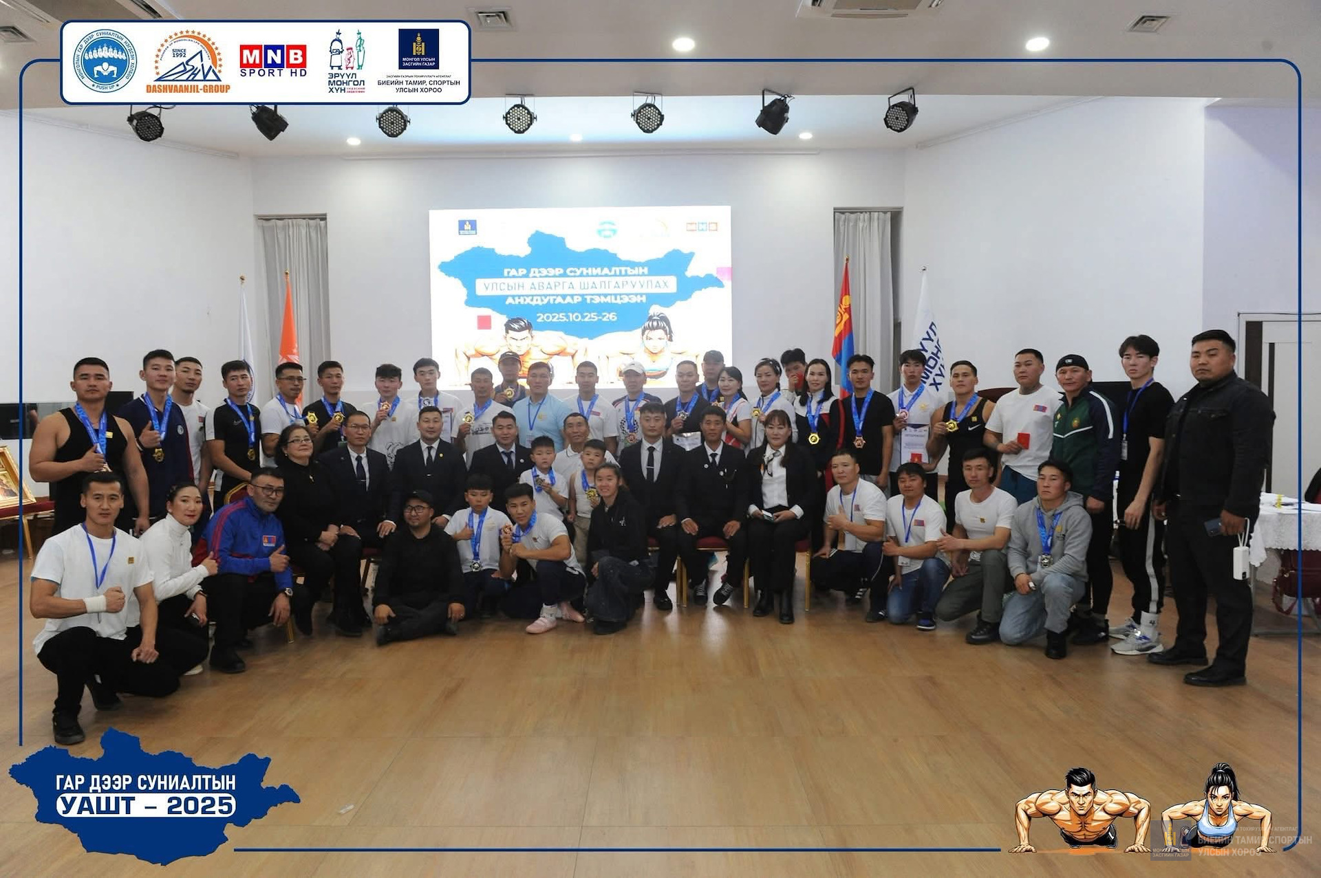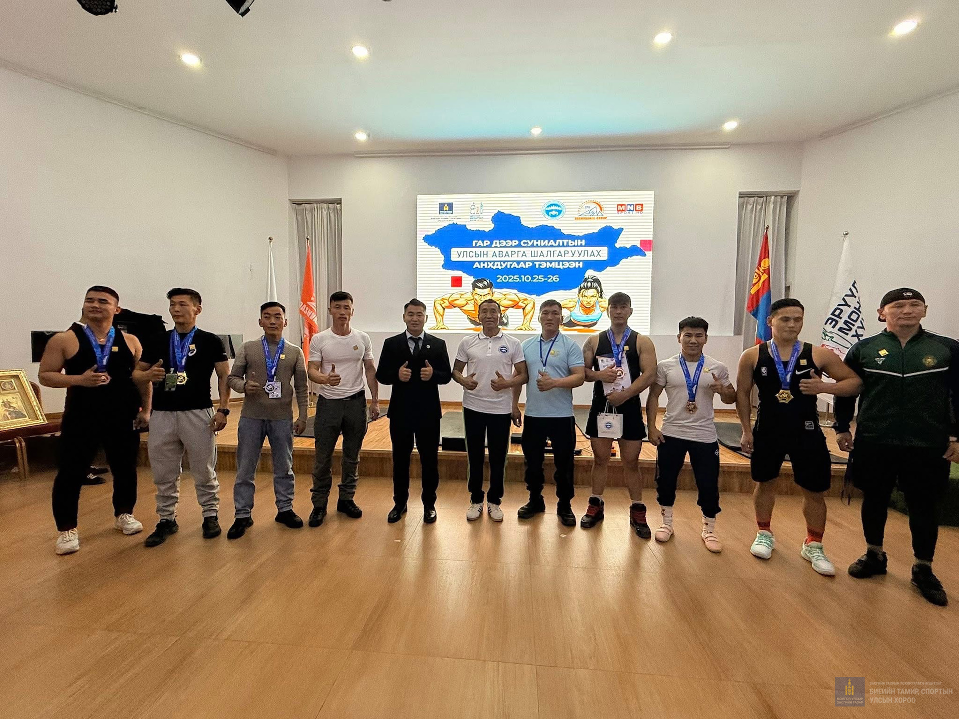 💪Гар дээр суниалтын анхдугаар Улсын аварга шалгаруулах тэмцээн 2025 оны 10 дугаар сарын 25-26 ний өдрүүдэд Улаанбаатар хотод зохиогдлоо.