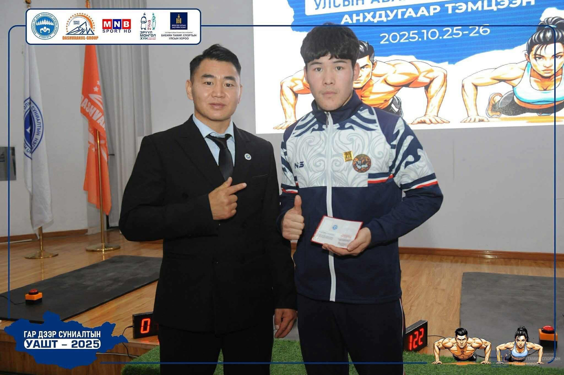 Улсын шүүгч- Т.Уртнасан нар тус тус хүртлээ. Баг таимрчдадаа халуун баяр хүргэе 👏👏👏👏💪