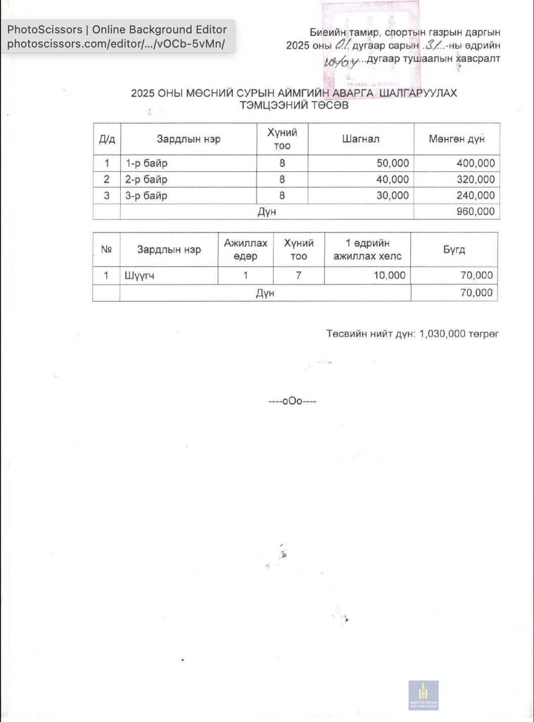 2024 оны тушаалын товьёг