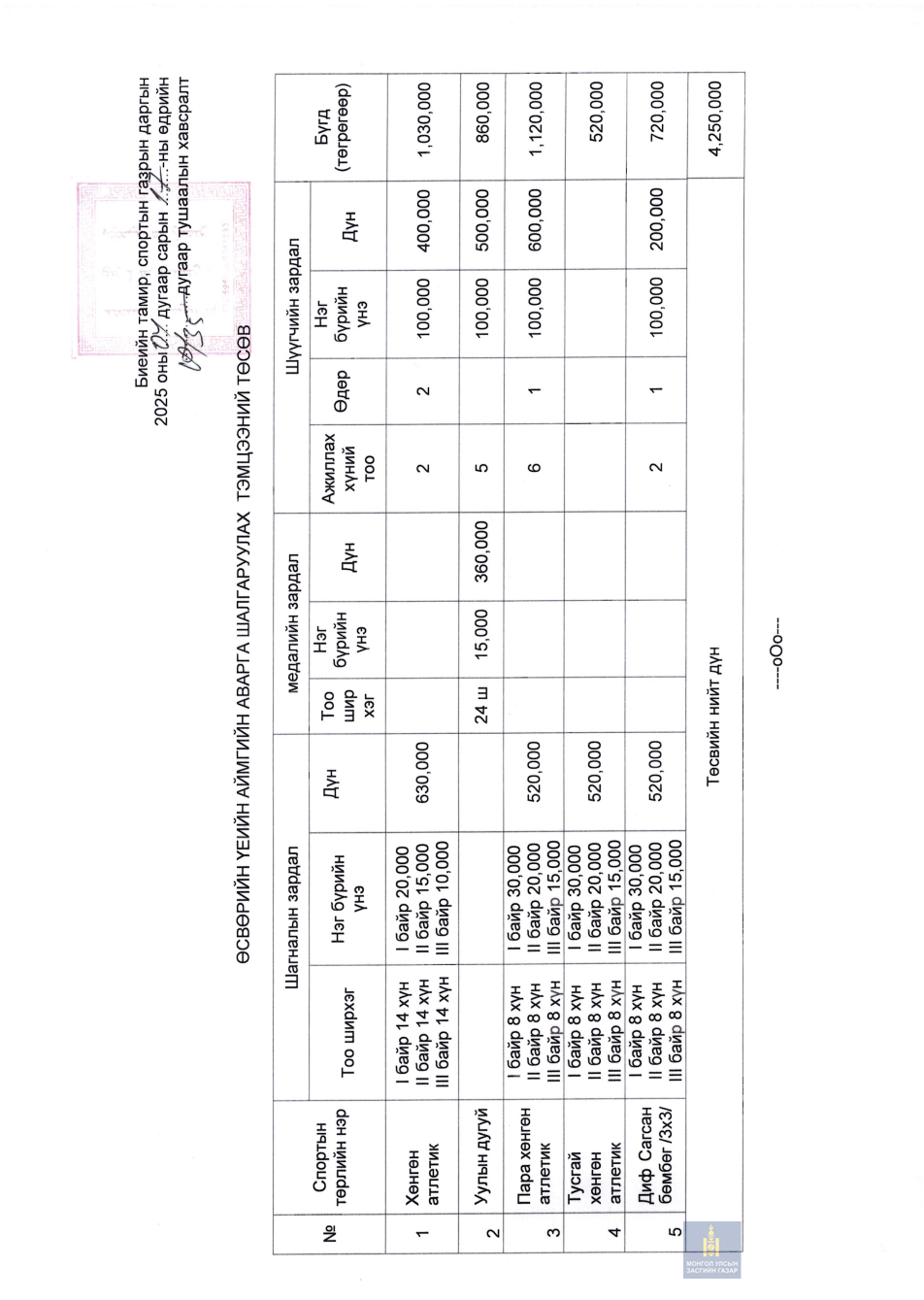 БИЕИЙН ТАМИР, СПОРТЫН ГАЗРЫН ДАРГЫН ТУШААЛ