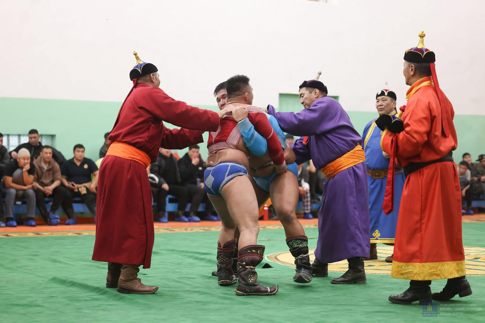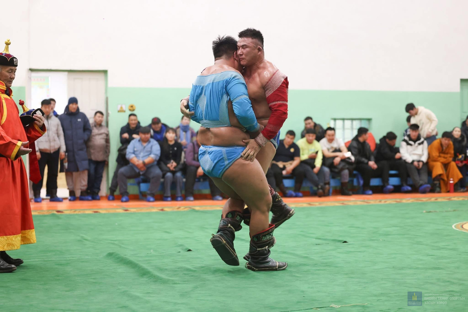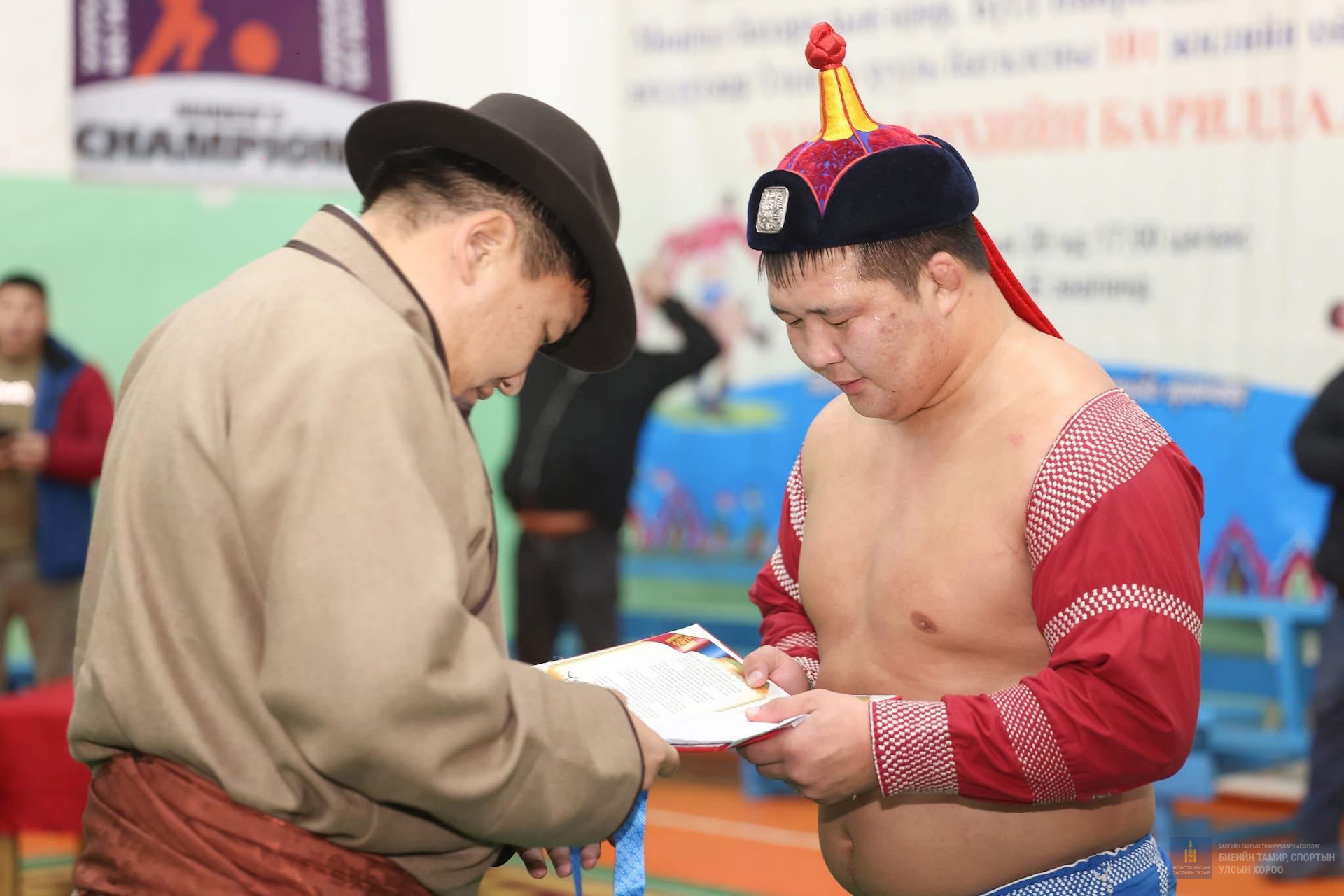 Барилдаанд Орхон аймгийн Баян-Өндөр сумын харьяат "Нэгдэл" клубийн бөх аймгийн начин Д.Төгс-Эрдэнэ түрүүлж, Булган аймгийн Хутаг-Өндөр сумын харьяат "Булган хангай" дэвжээний бөх аймгийн арслан Б.Хашбат үзүүрлэлээ.