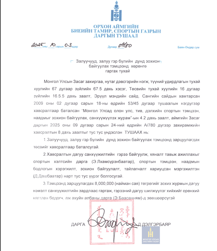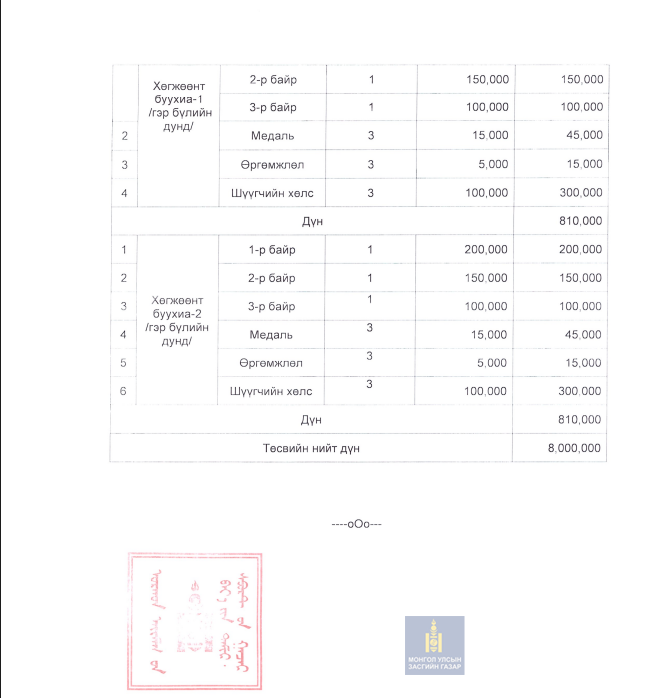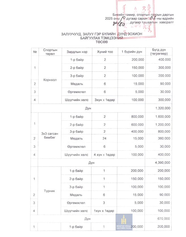 Дэлгэрэнгүй мэдээлэл авах эх сурвалж: Биеийн тамир, спортын газрын ерөнхий нягтлан Э.Баасанням