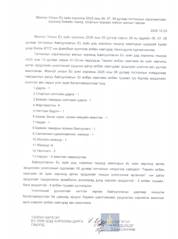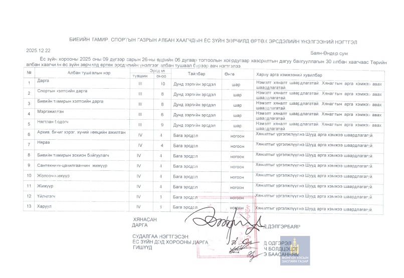 Дэлгэрэнгүй мэдээлэл авах эх сурвалж: Биеийн тамир, спортын газрын Ёс зүйн дэд хорооны дарга Д.Одгэрэл