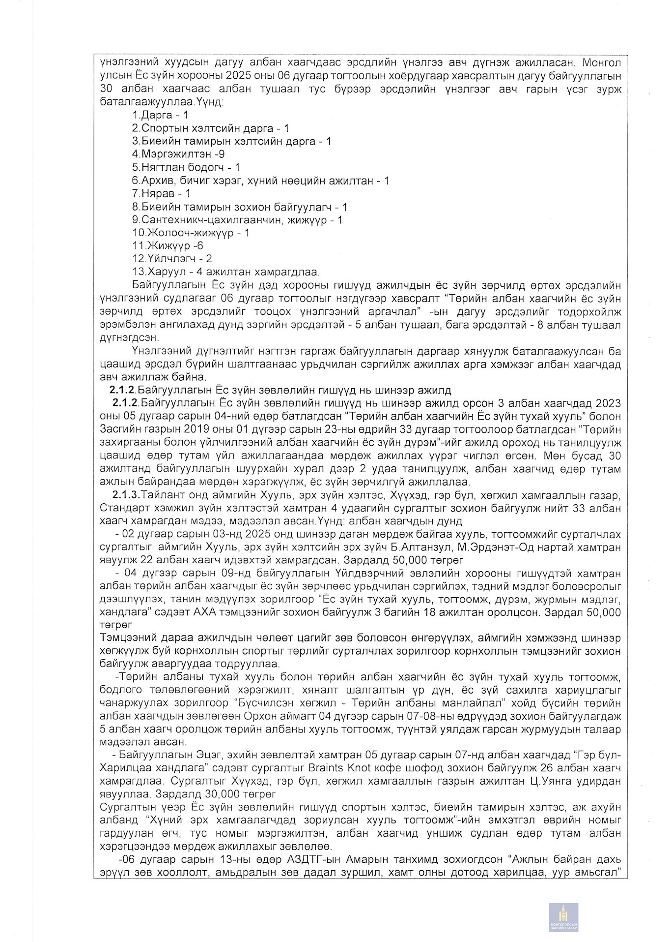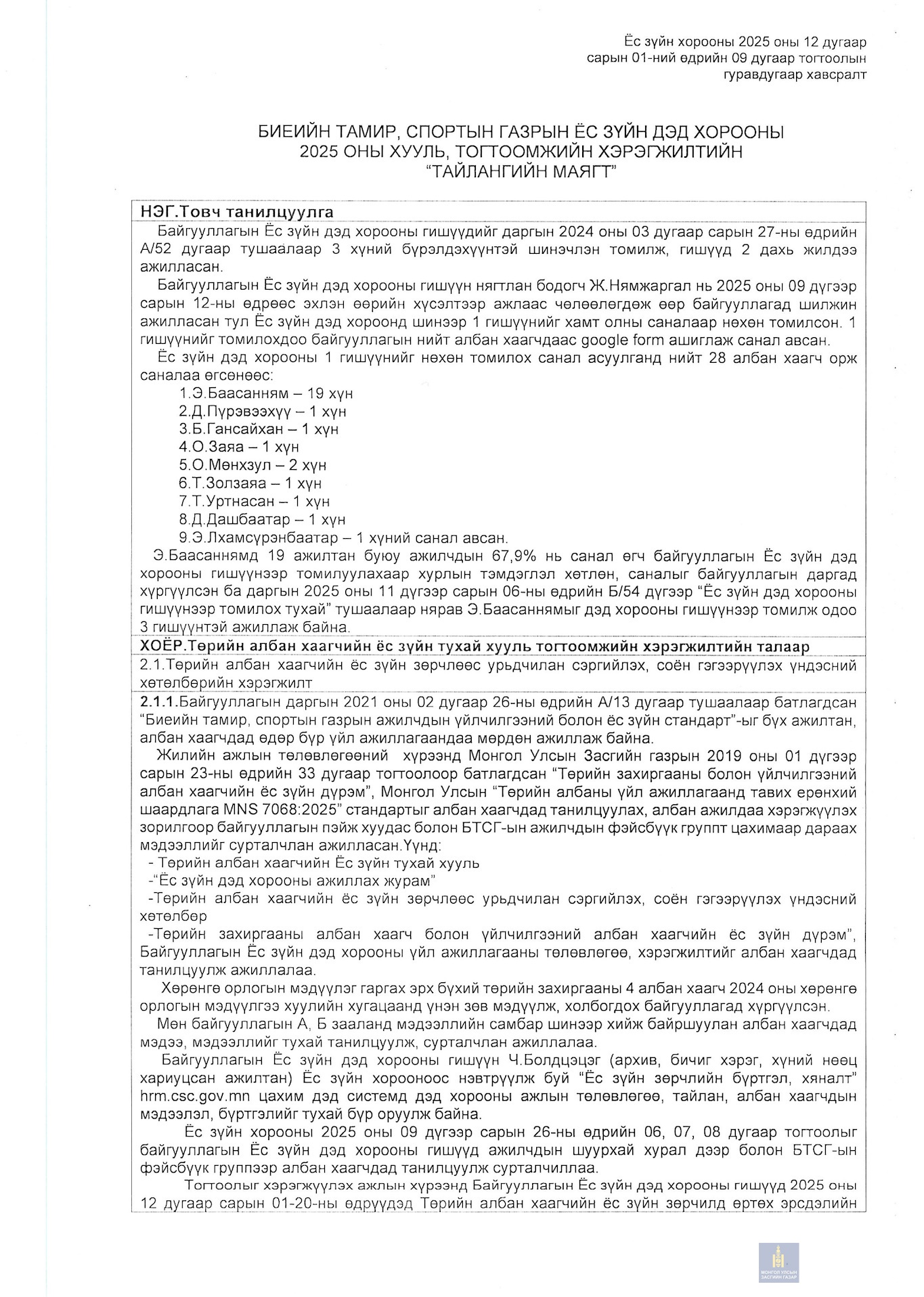 Ёс зүйн дэд хорооны 2025 оны хуулт тогтоомжийн тайлан.