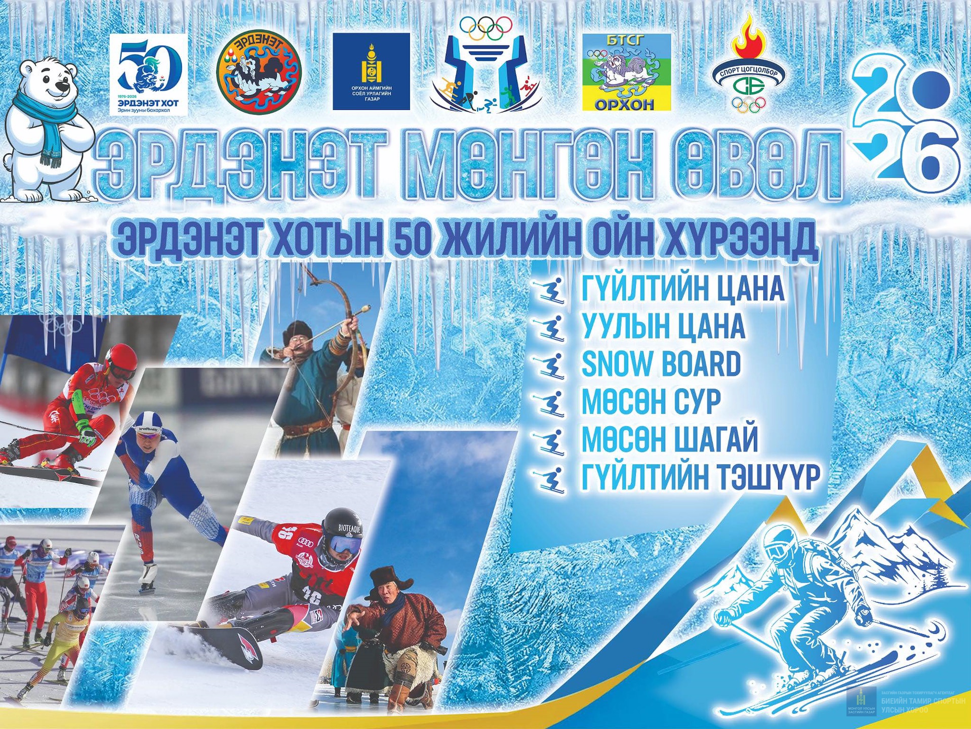 Эрдэнэт хот үүсгэн байгуулагдсаны 50 жилийн ойг тохиолдуулан МӨНГӨН ӨВӨЛ өвлийн спортын нээлттэй тэмцээн зохион байгуулагдана.