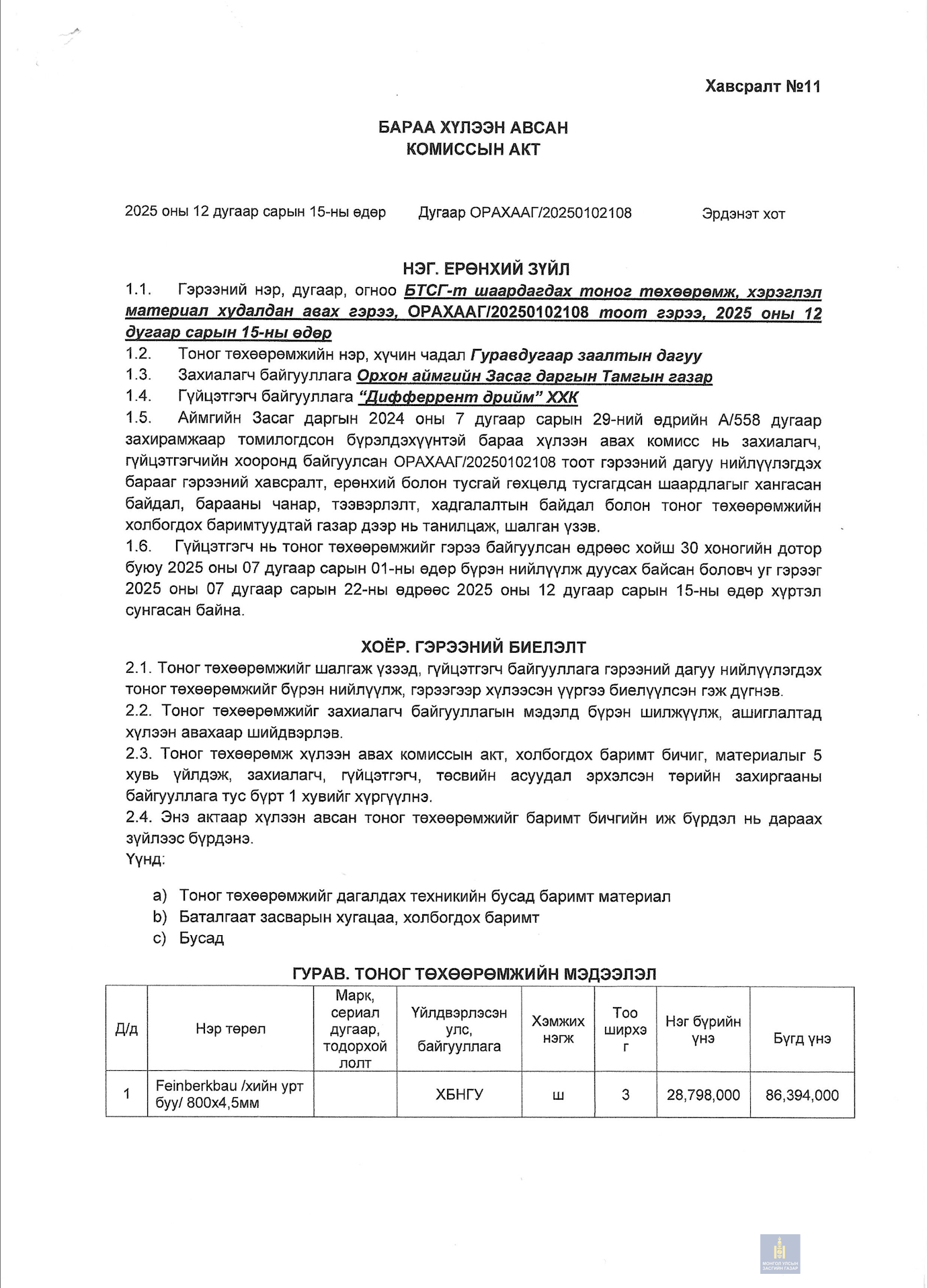 Худалдан авах ажиллагааны акт.