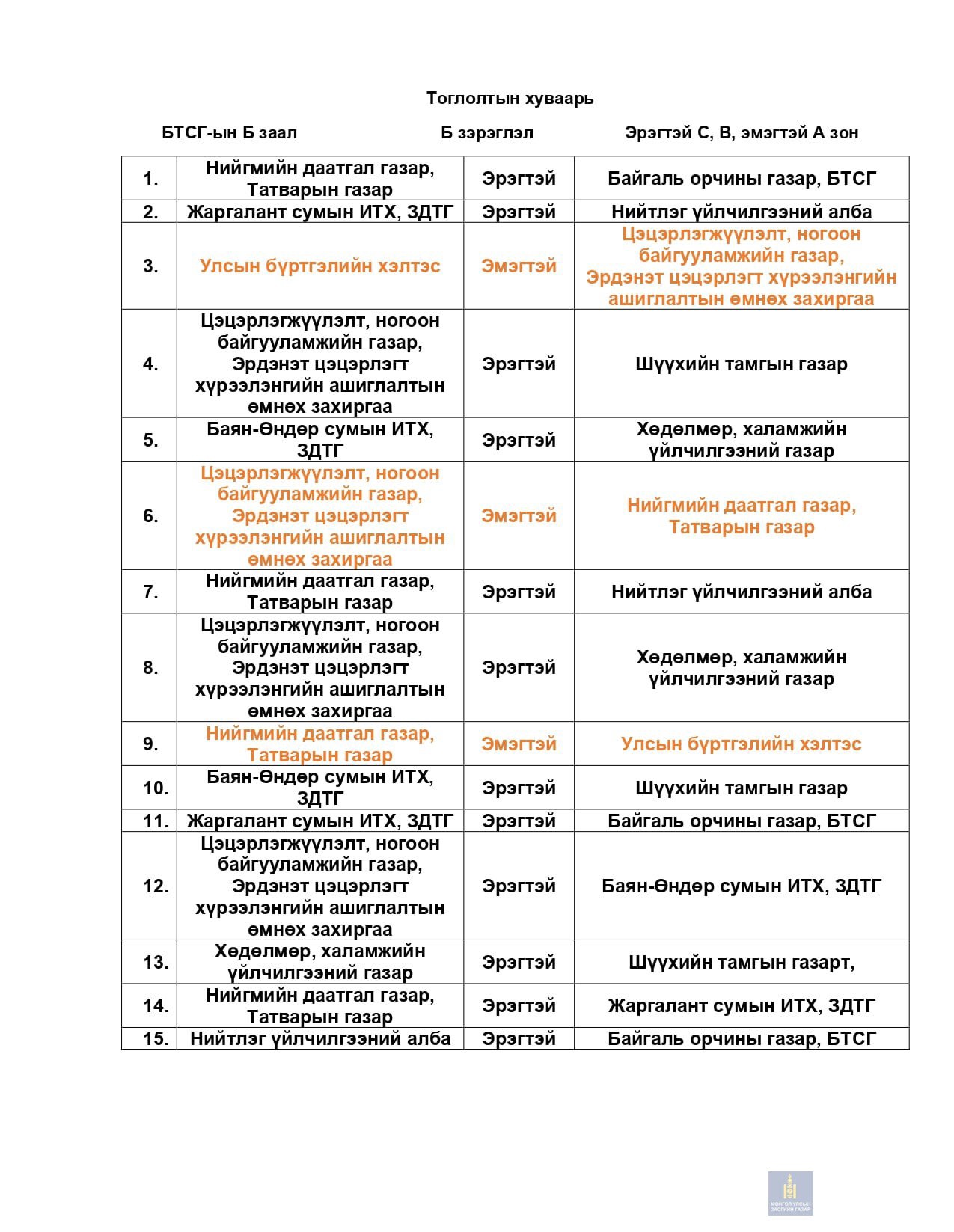 ТОГТООЛ, ШИЙДВЭР,ЗАХИРАМЖ