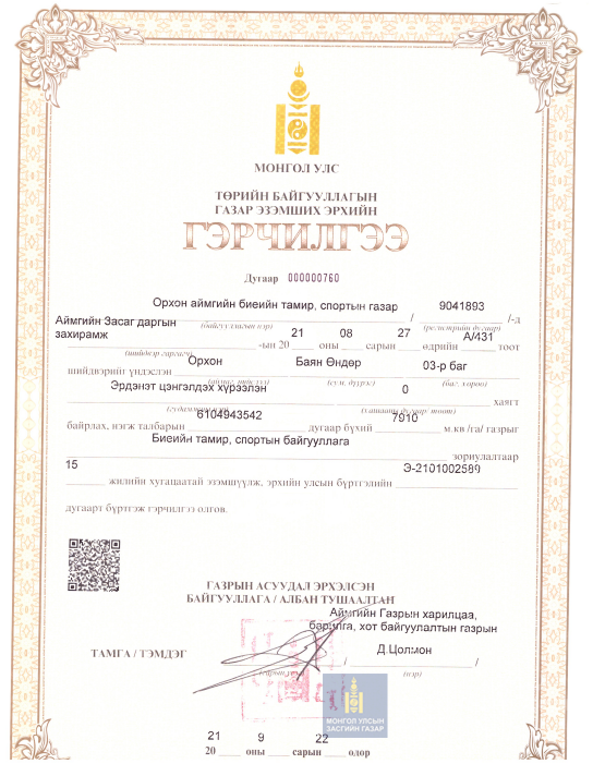 Утас: +976 77717777 И-мэйл: orkhon@sport.gov.mn