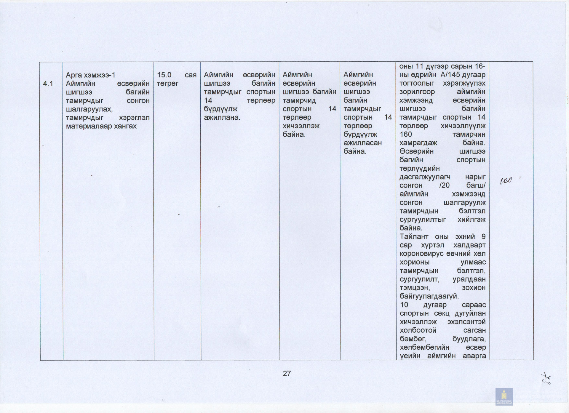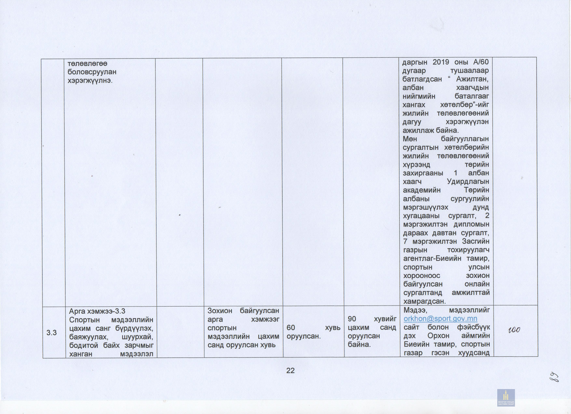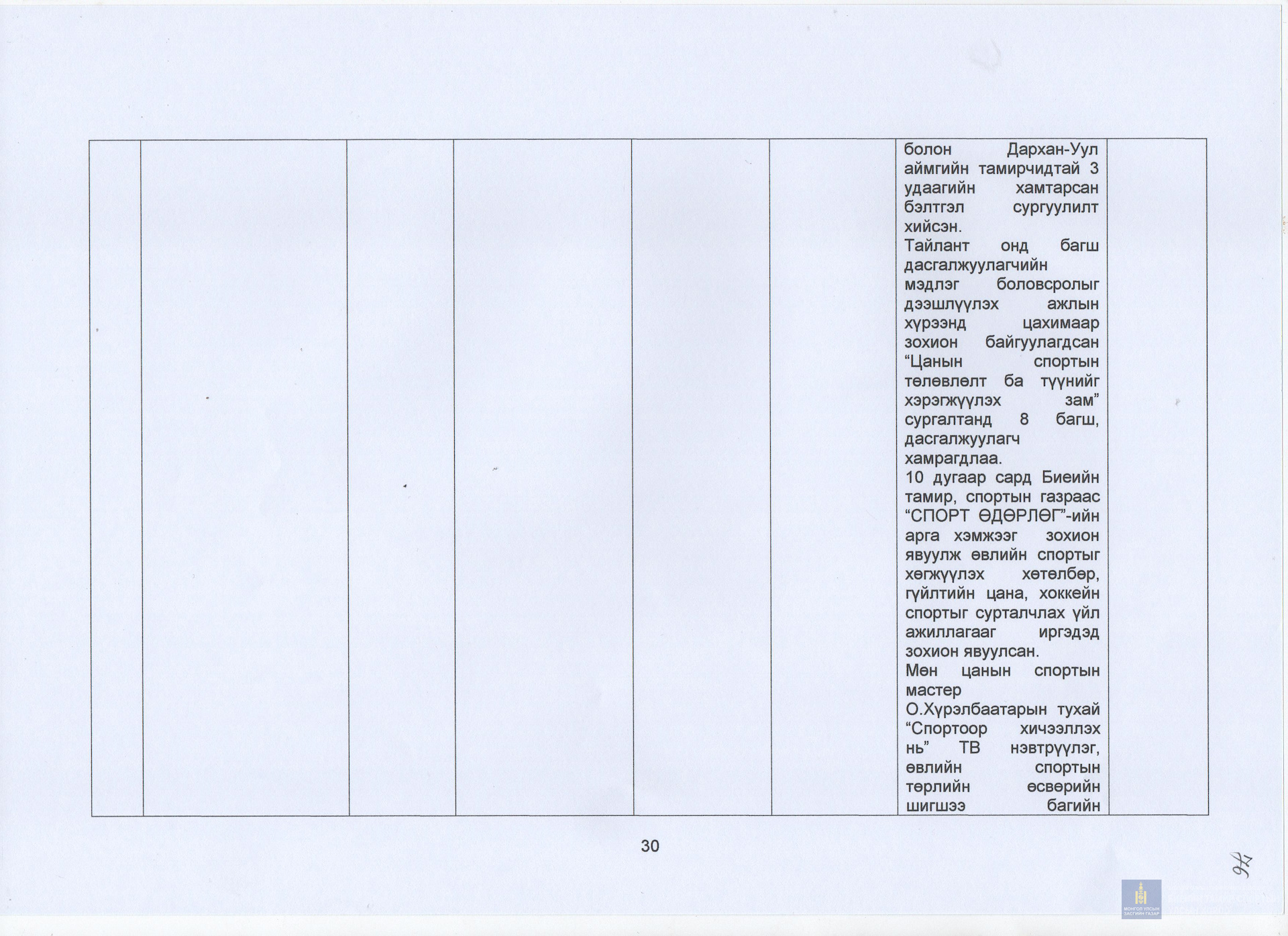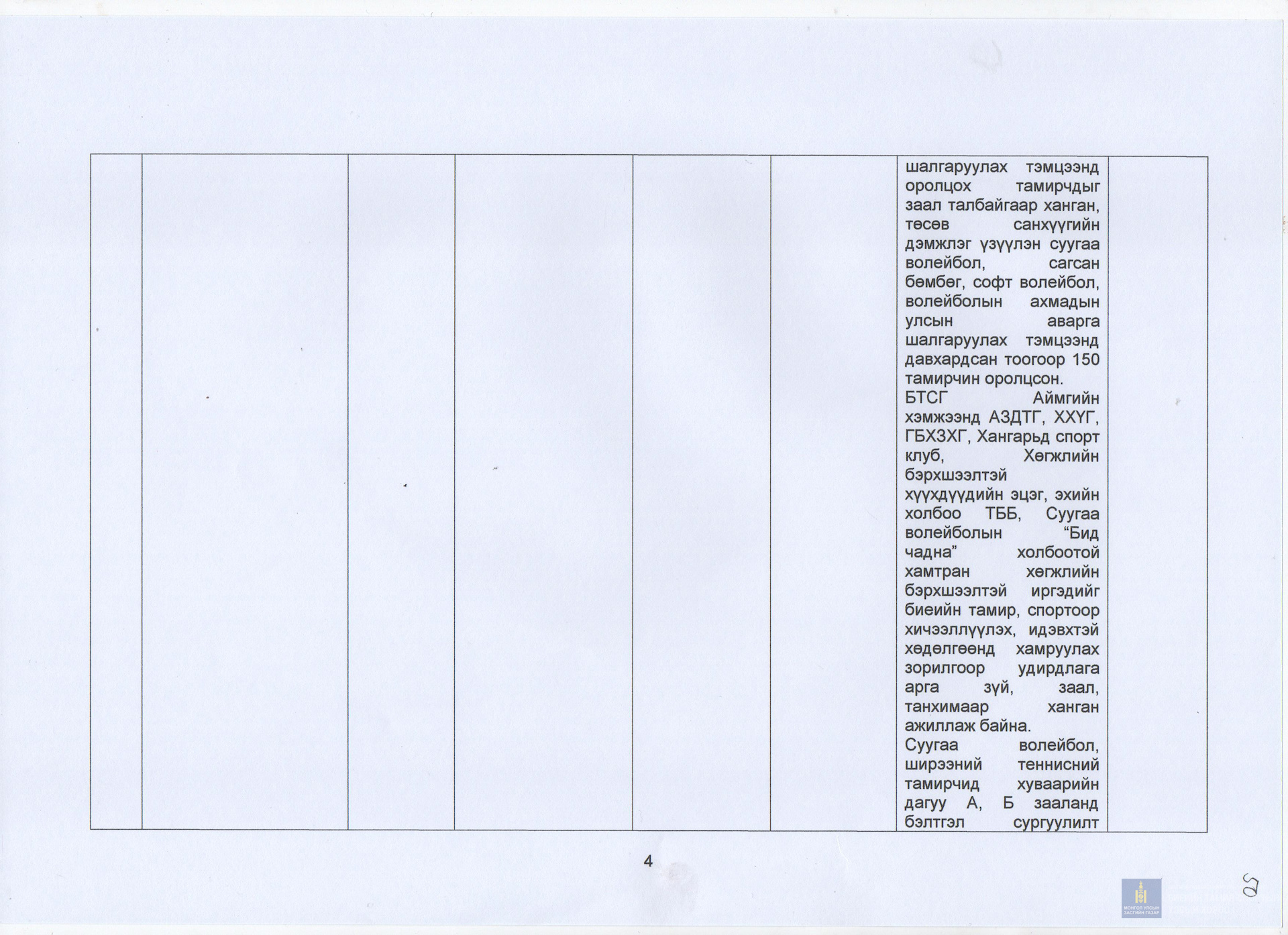 БИЕИЙН ТАМИР, СПОРТЫН ГАЗРЫН ДАРГЫН ТУШААЛ