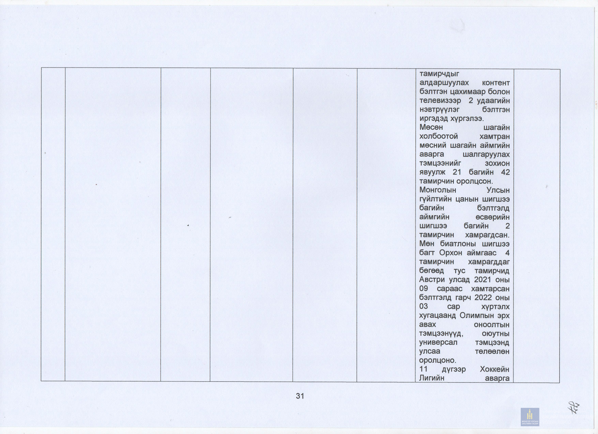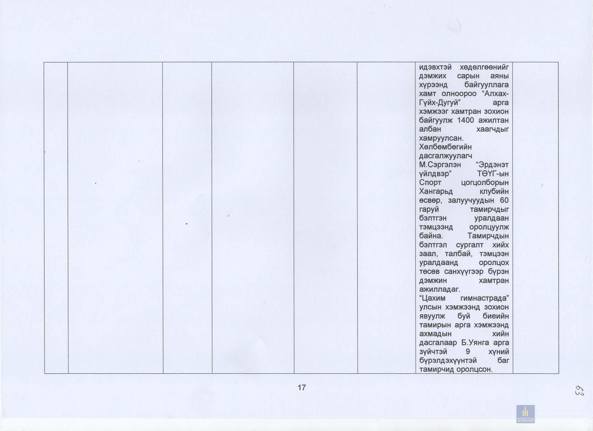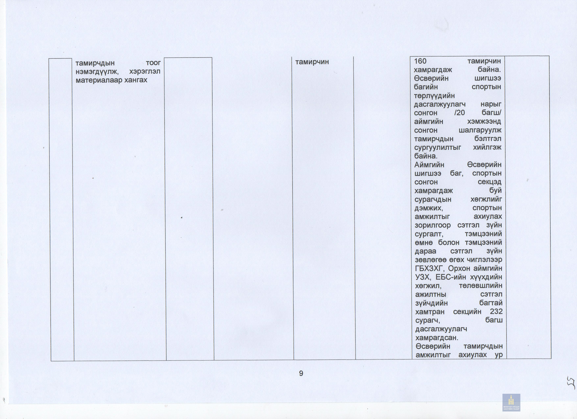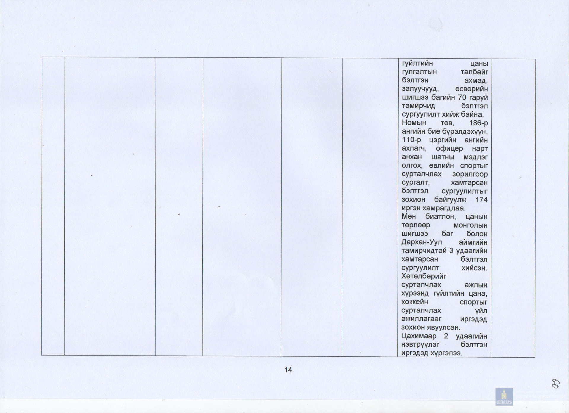 БИЕИЙН ТАМИР, СПОРТЫН ГАЗРЫН ДАРГЫН ТУШААЛ