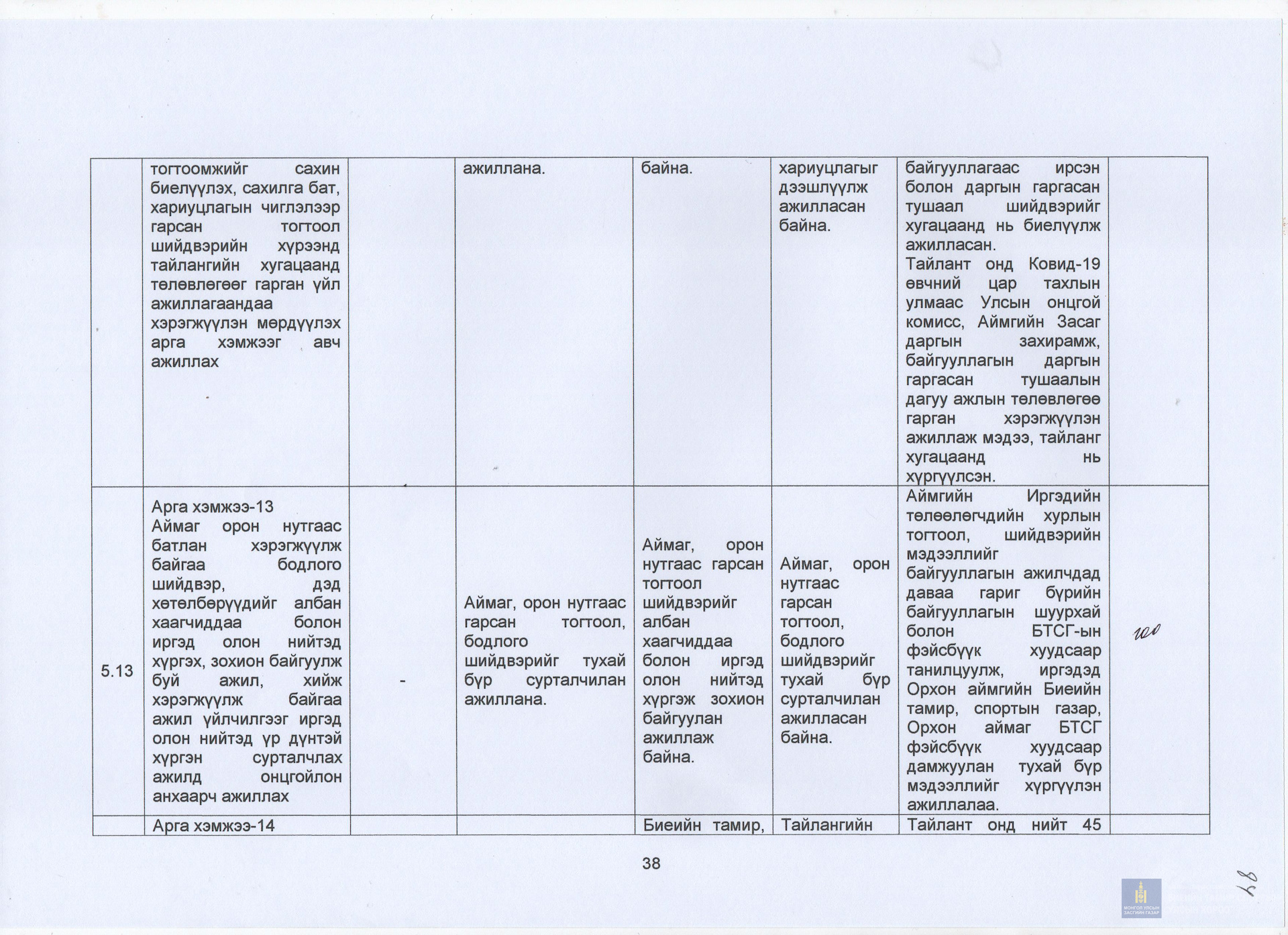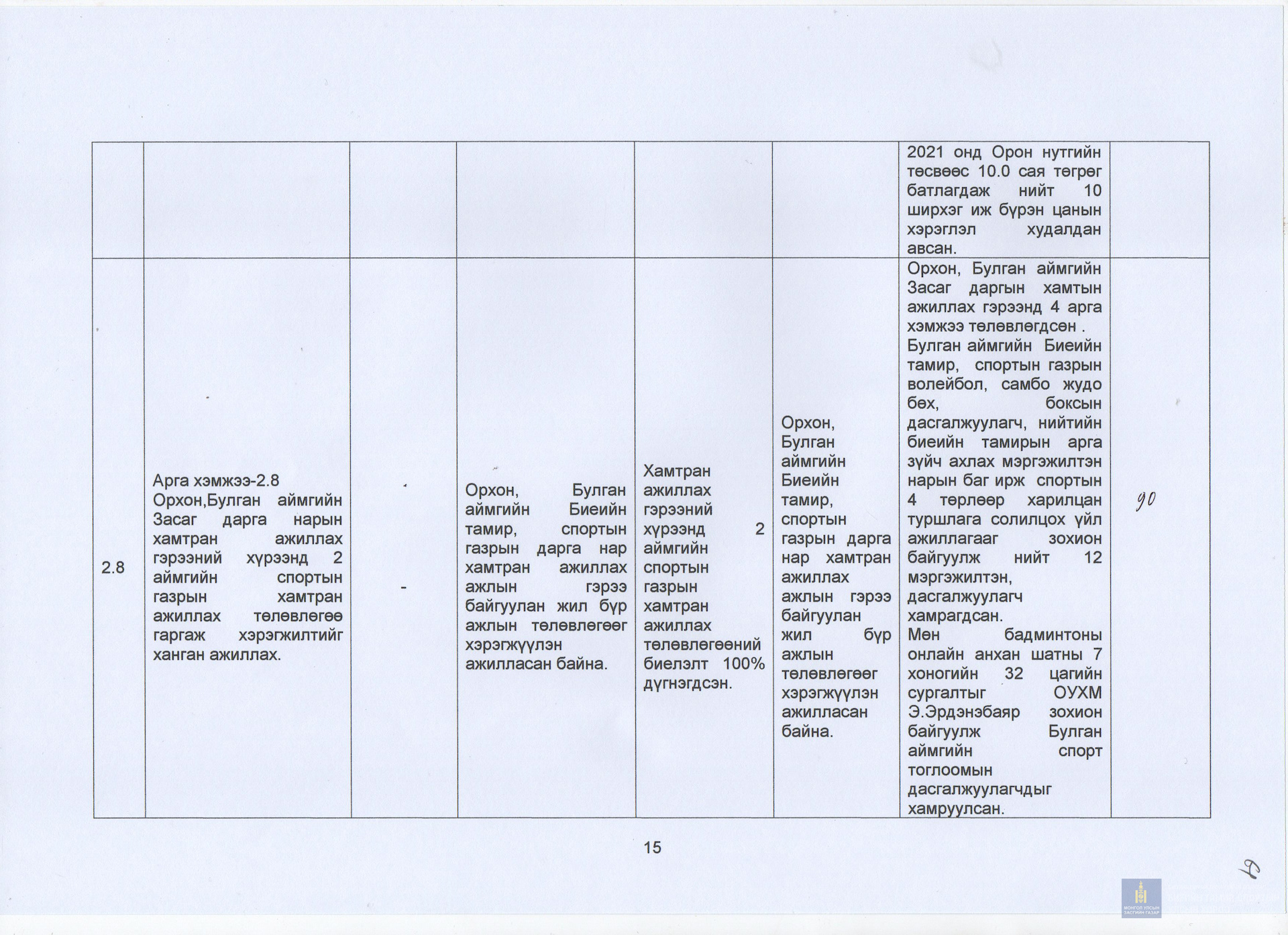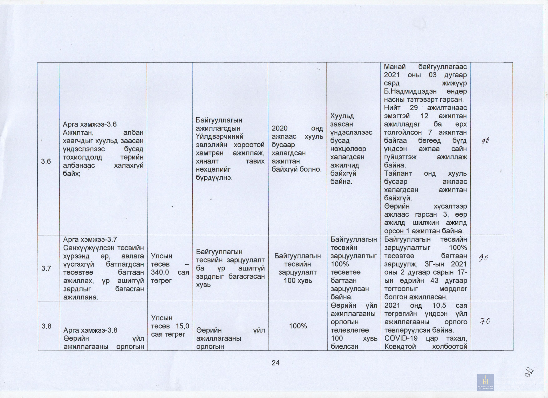 2021-ОНЫ БАЙГУУЛЛАГЫН ГҮЙЦЭТГЭЛИЙН ТӨЛӨВЛӨГӨӨ ТАЙЛАН