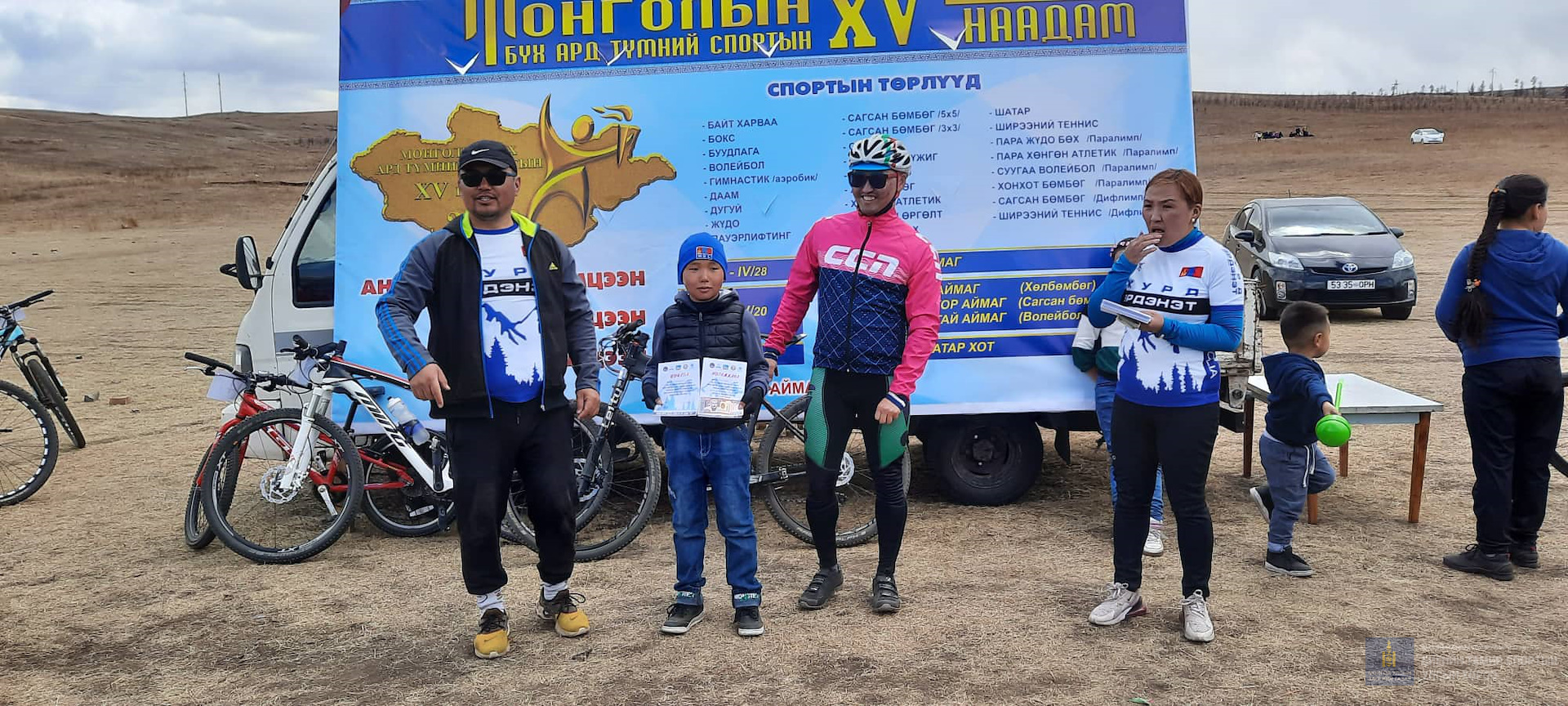 Монголын Бүх Ард түмний XV их наадмын дугуйн анхан шатны тэмцээн 2022 оны 04 дүгээр сарын 23-ны өдөр Спорт амралтын хүрээлэнд зохион байгуулагдаж 6 насны ангилалд 51 тамирчин оролцож 36 тамирчныг шагнаж урамшуулсан байна.