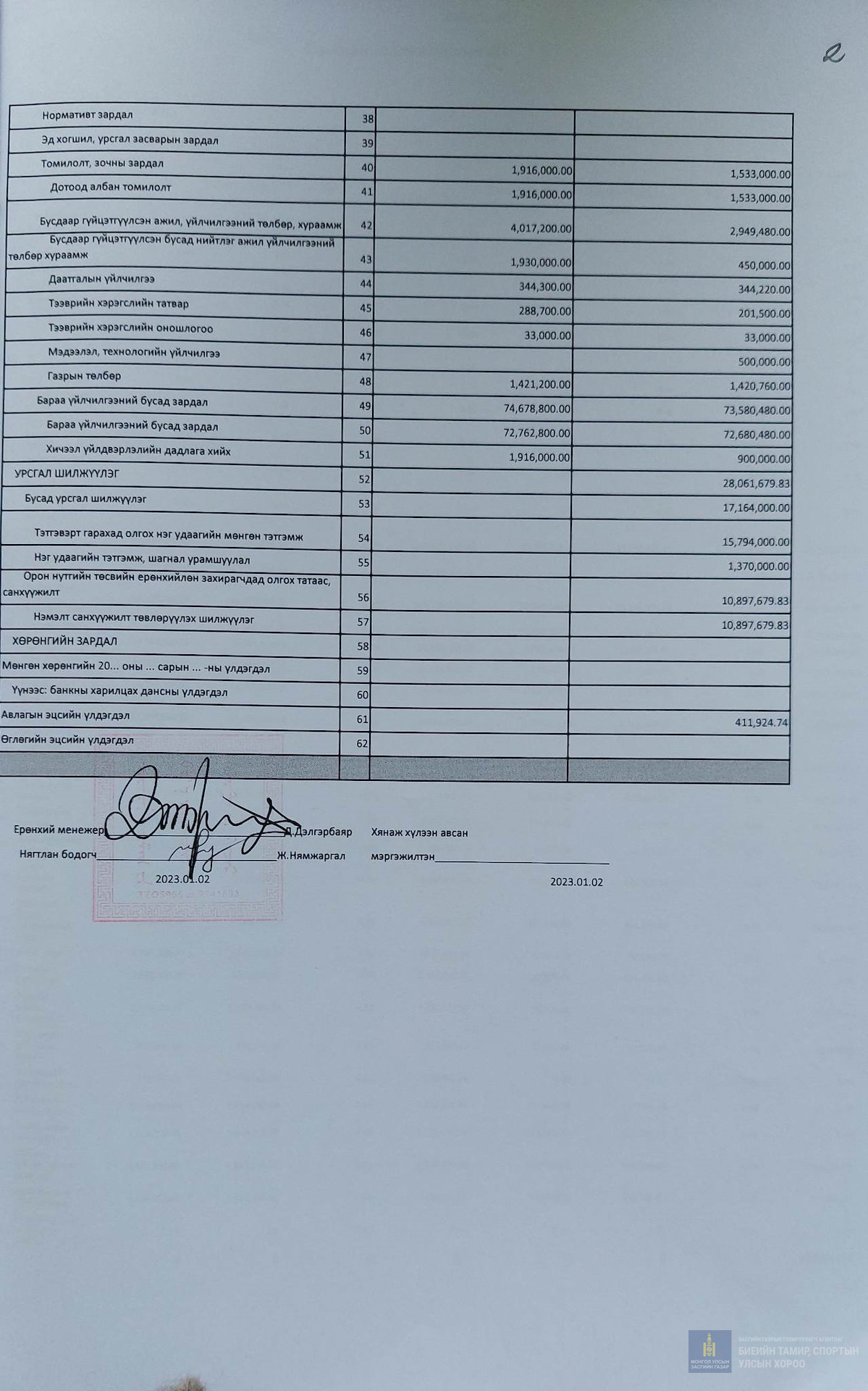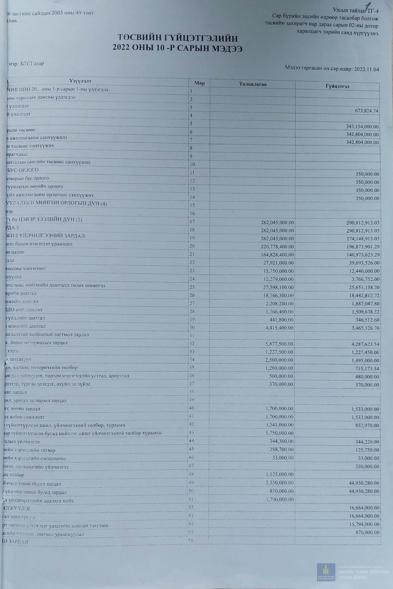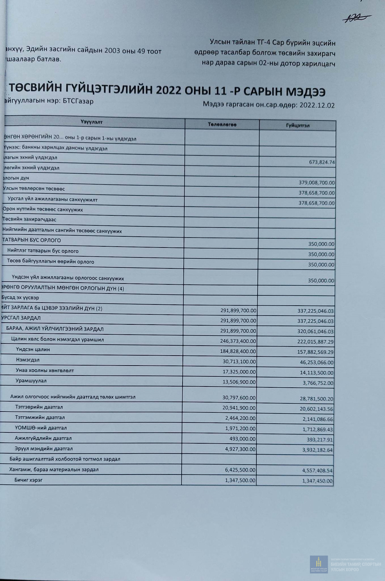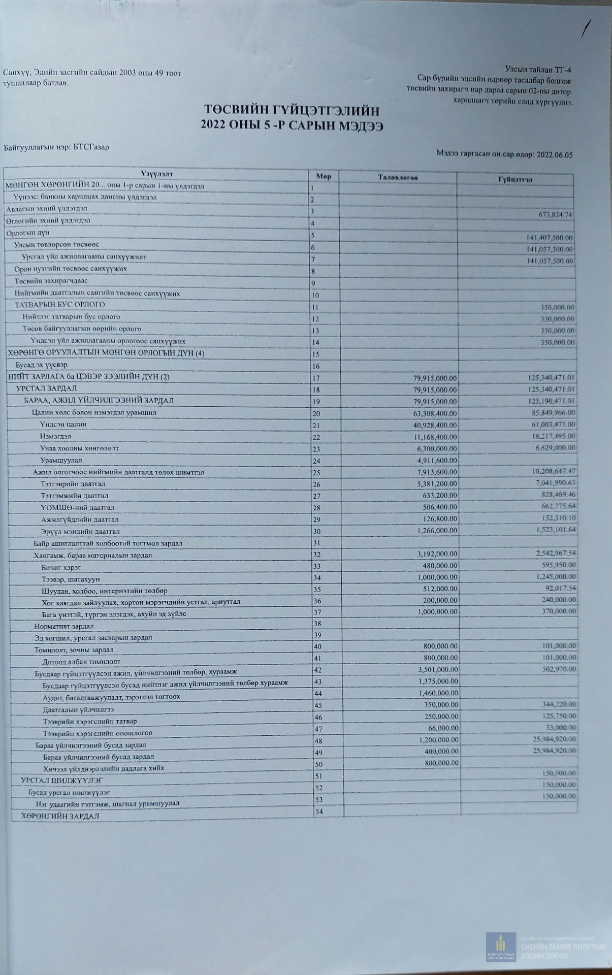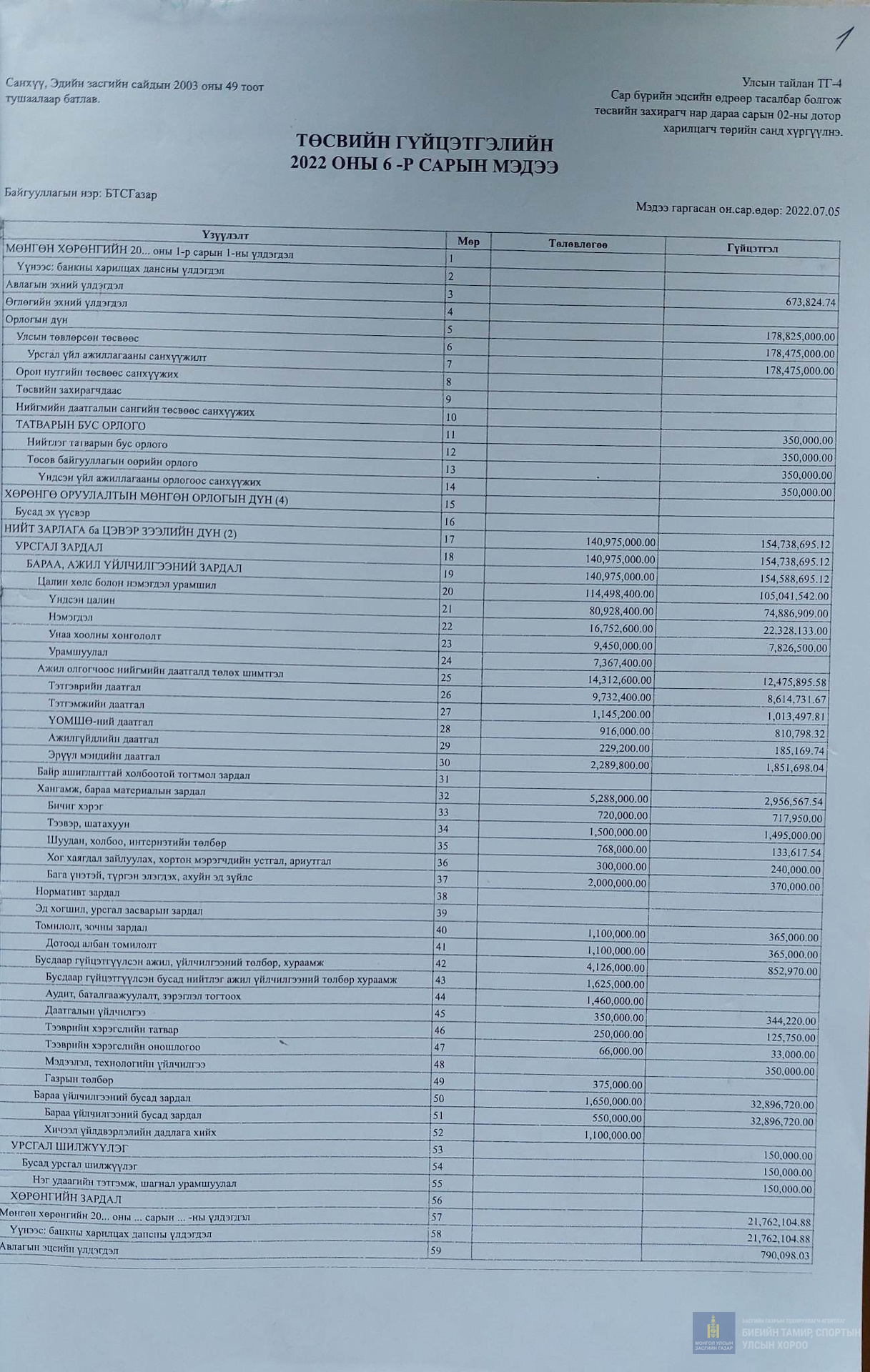 2022 оны төсвийн гүйцэтгэлийн мэдээ
