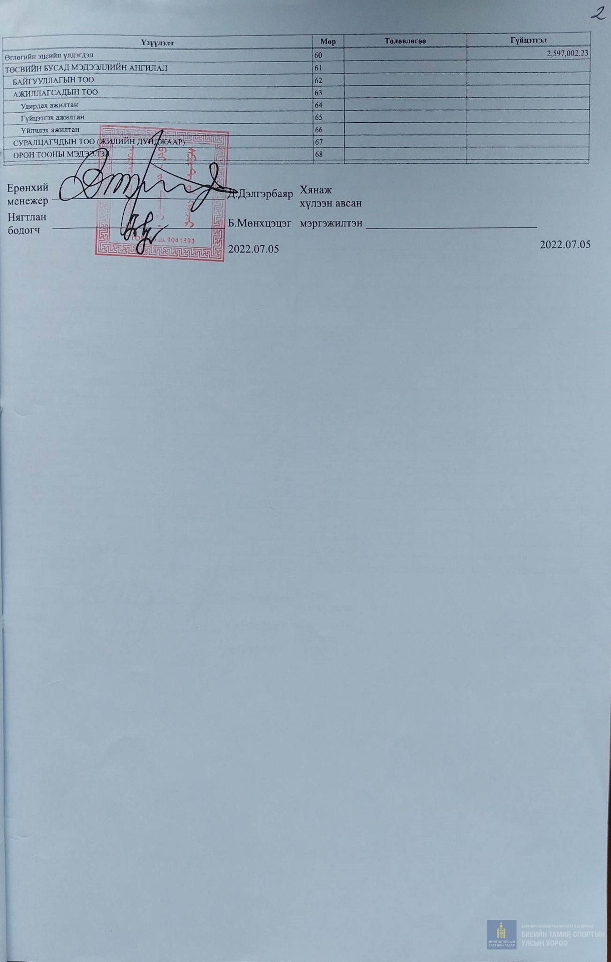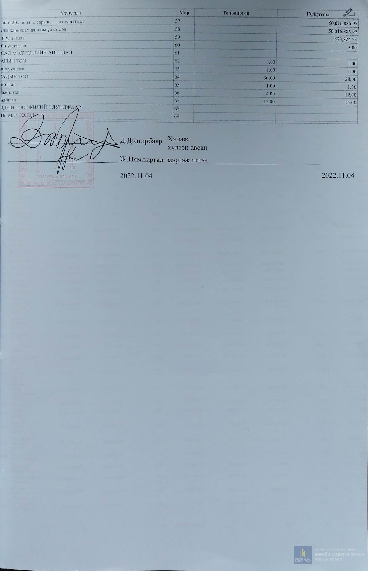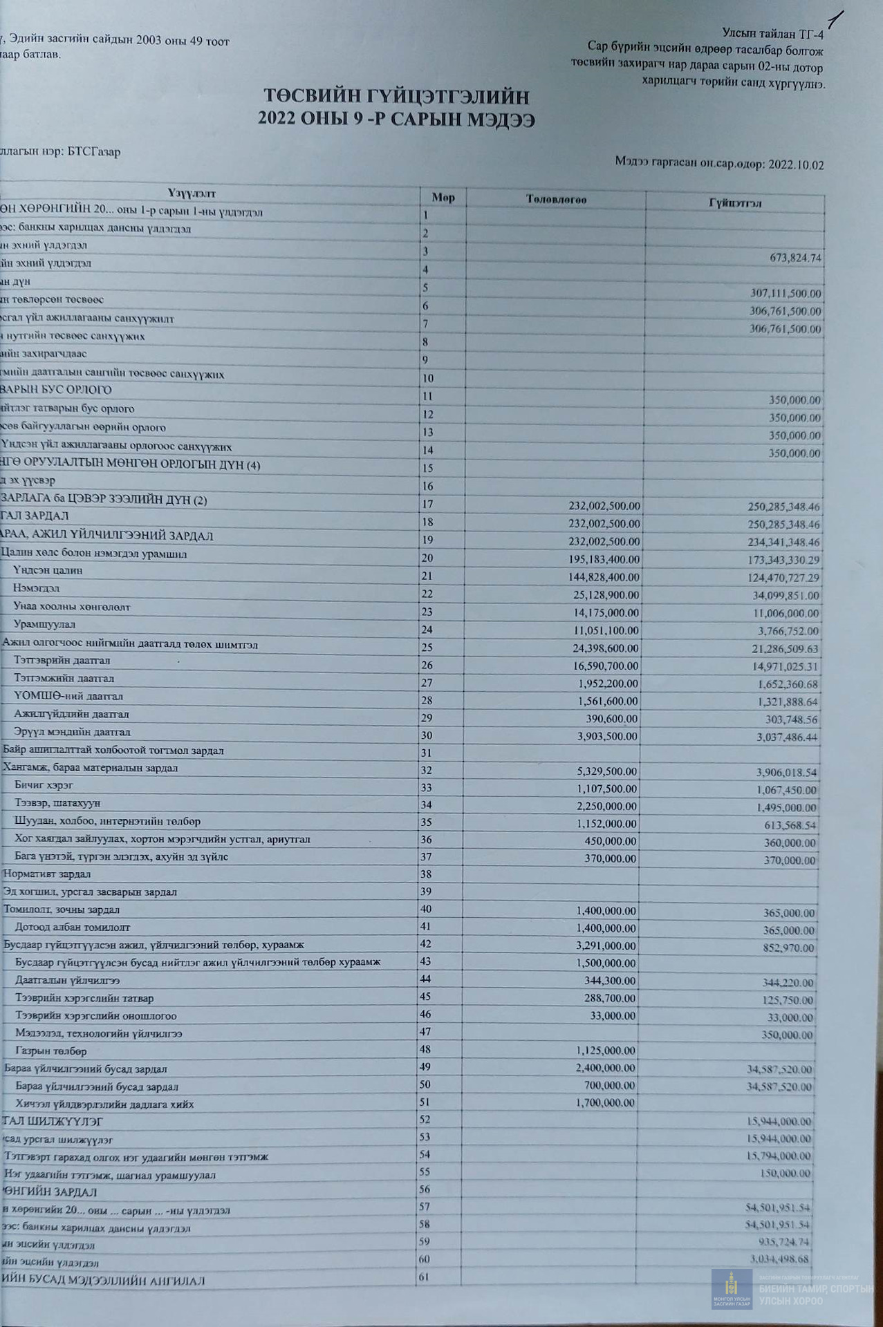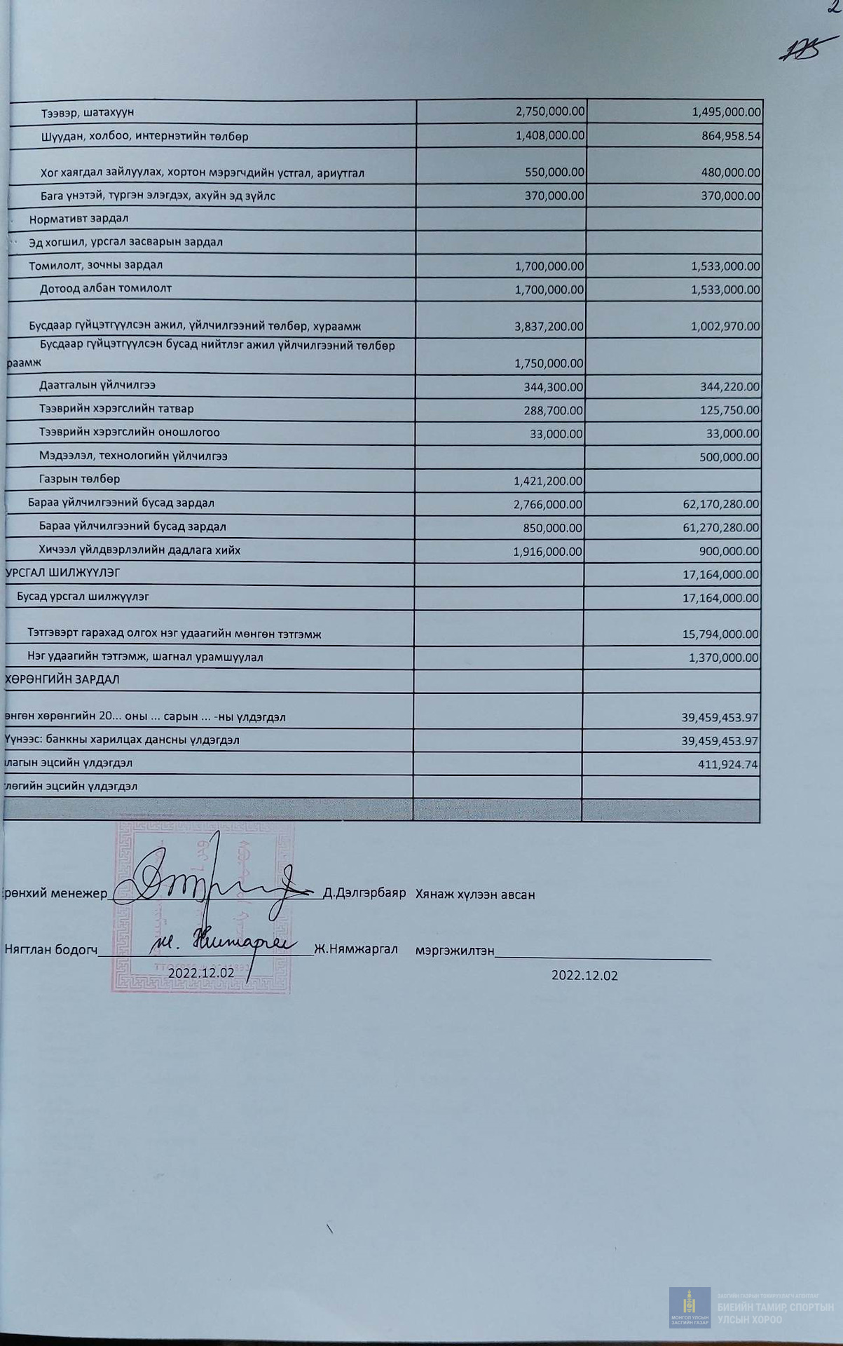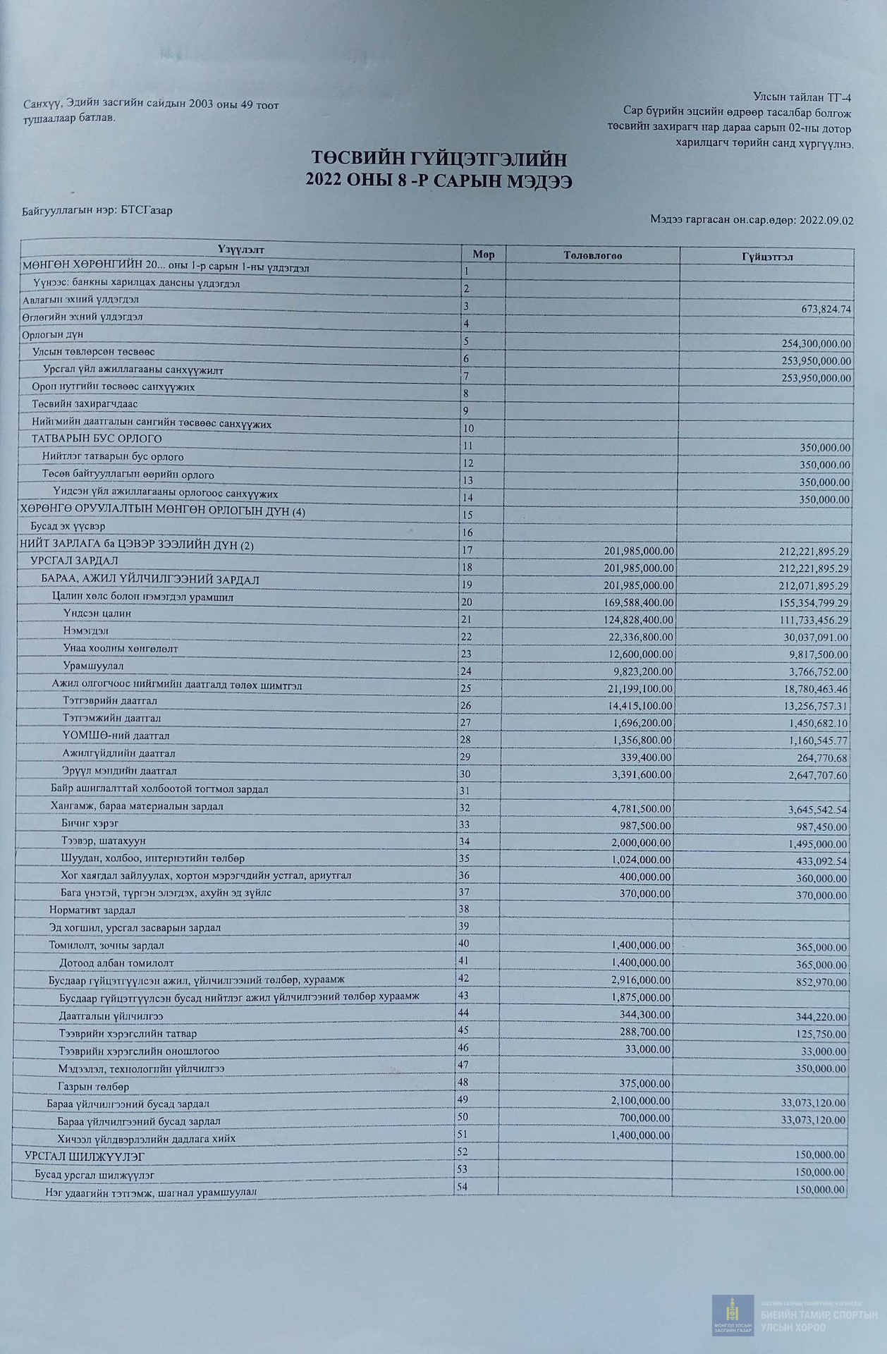 2022 оны төсвийн гүйцэтгэлийн мэдээ
