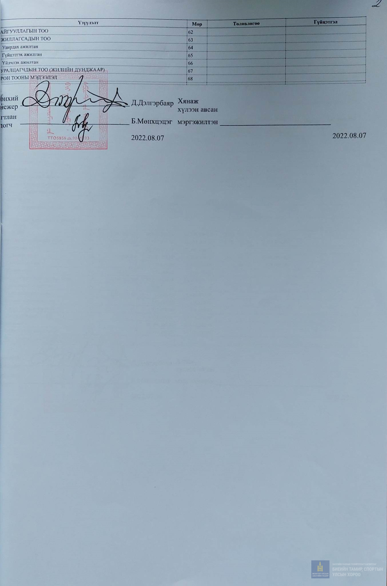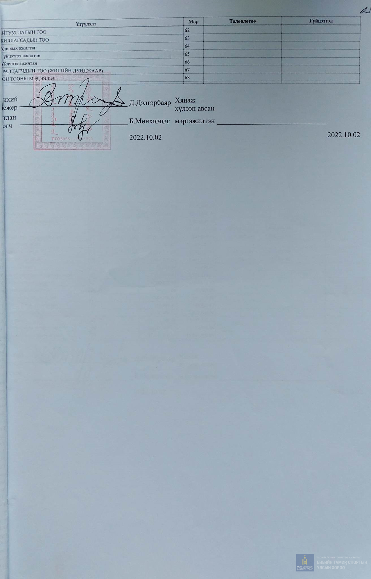 БИЕИЙН ТАМИР, СПОРТЫН ГАЗРЫН ДАРГЫН ТУШААЛ