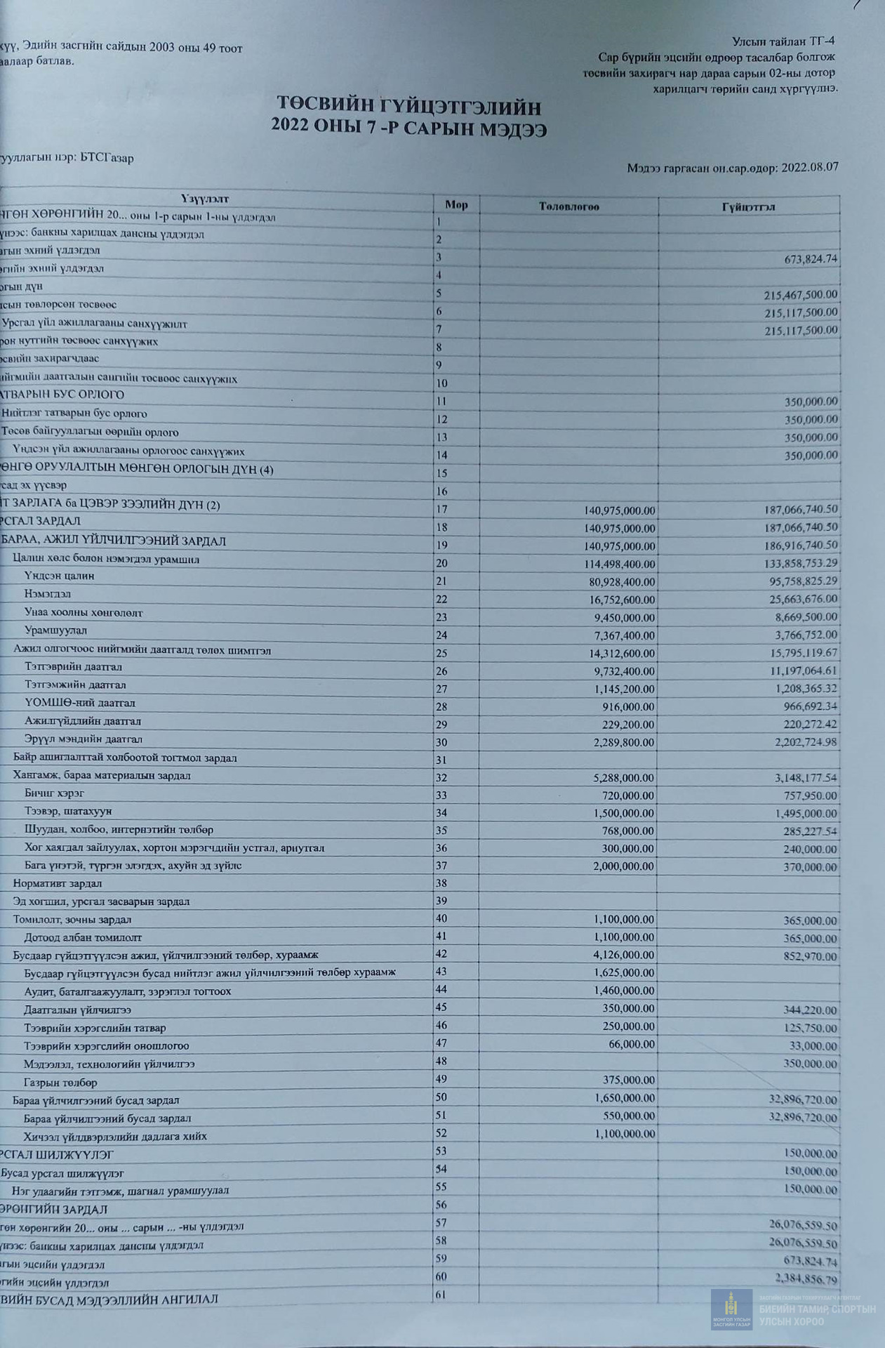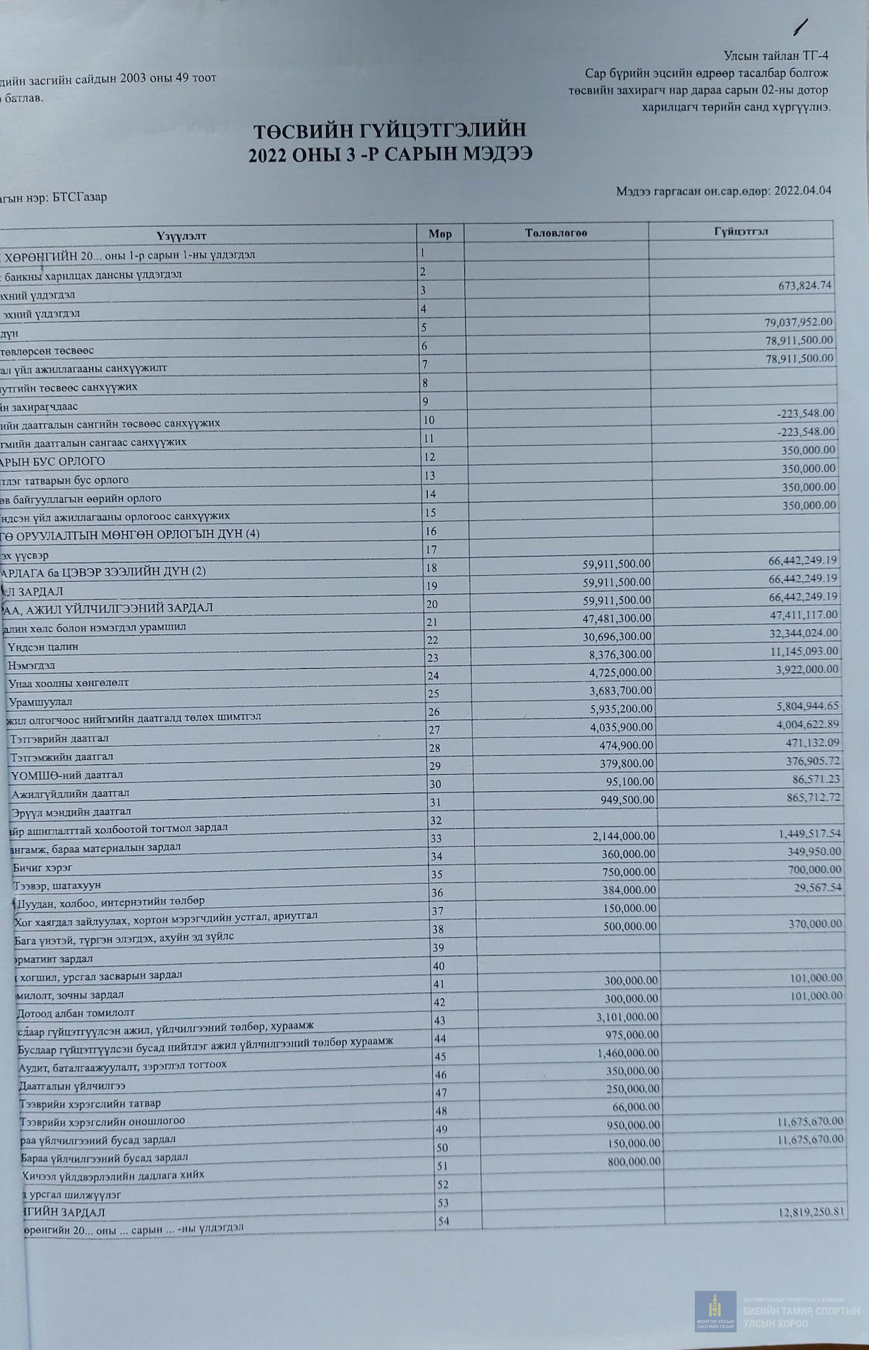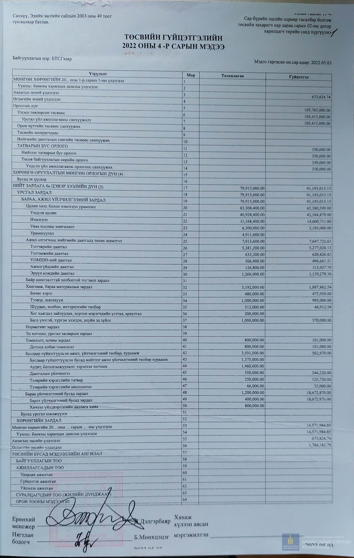 ТӨСӨВ САНХҮҮГИЙН ИЛ ТОД БАЙДАЛ