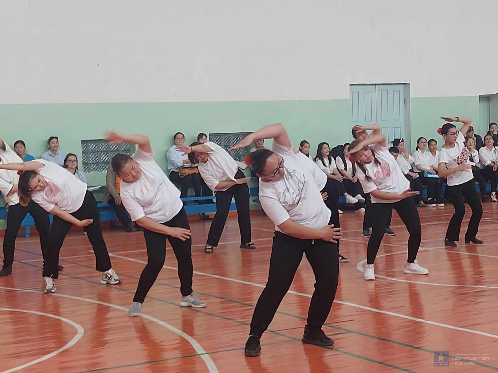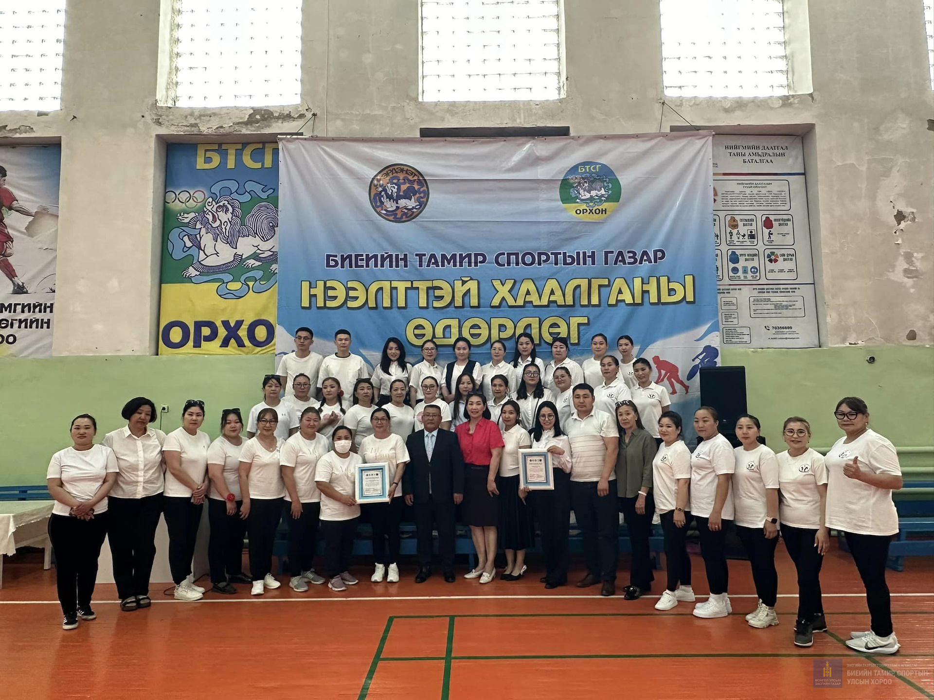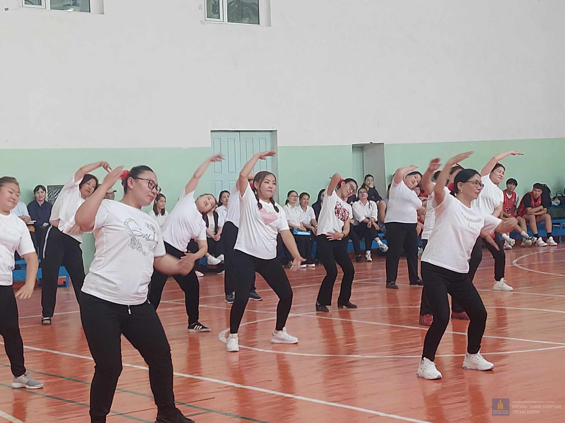 Мөн “Хичээллэе-Өрнүүлье-Хэвшье” аяны хүрээнд зохион байгуулсан “Ажлын байрны дасгал”-ын уралдаанд шалгарсан байгууллагуудын шагналыг гардуулж, шалгарсан байгууллагууд дасгалаа үзүүлж иргэдэд сурталчиллаа. Тус уралдааныг төрийн болон төрийн өмчит байгууллага, аж ахуйн нэгжүүдийн дунд 2 сарын турш зохион байгуулж, 33 байгууллагын давхардсан тоогоор 7384 ажилтан албан хаагчид оролцлоо. Уралдаанд шалгарсан байгууллагуудыг өргөмжлөл, мөнгөн шагналаар шагнасан.Үүнд: