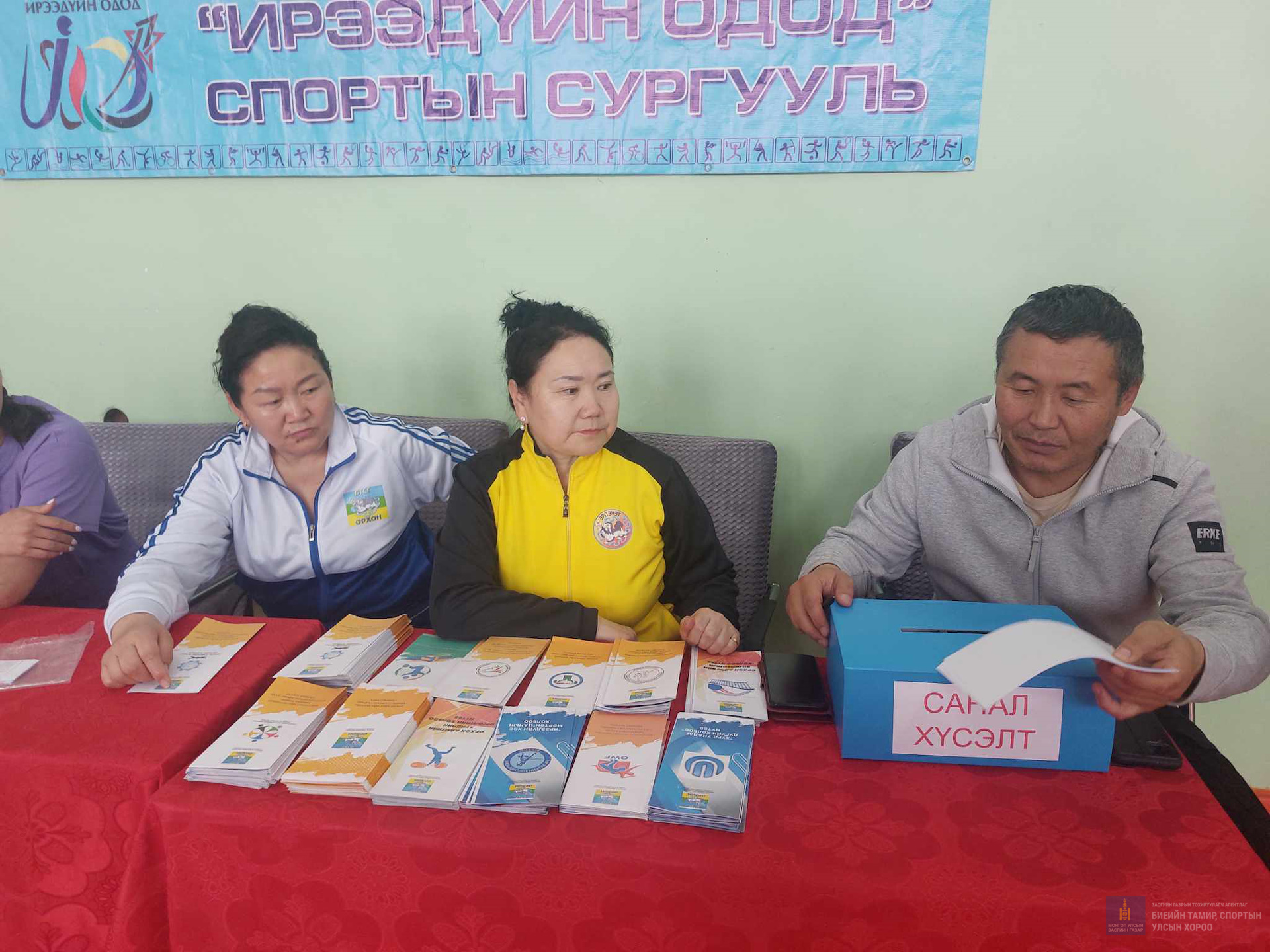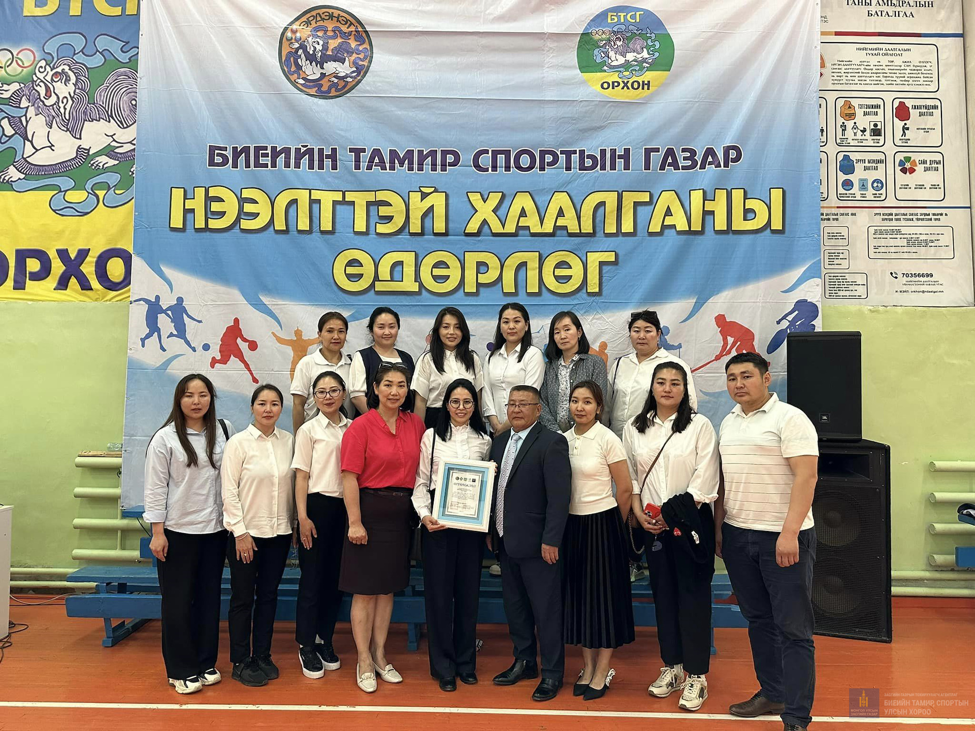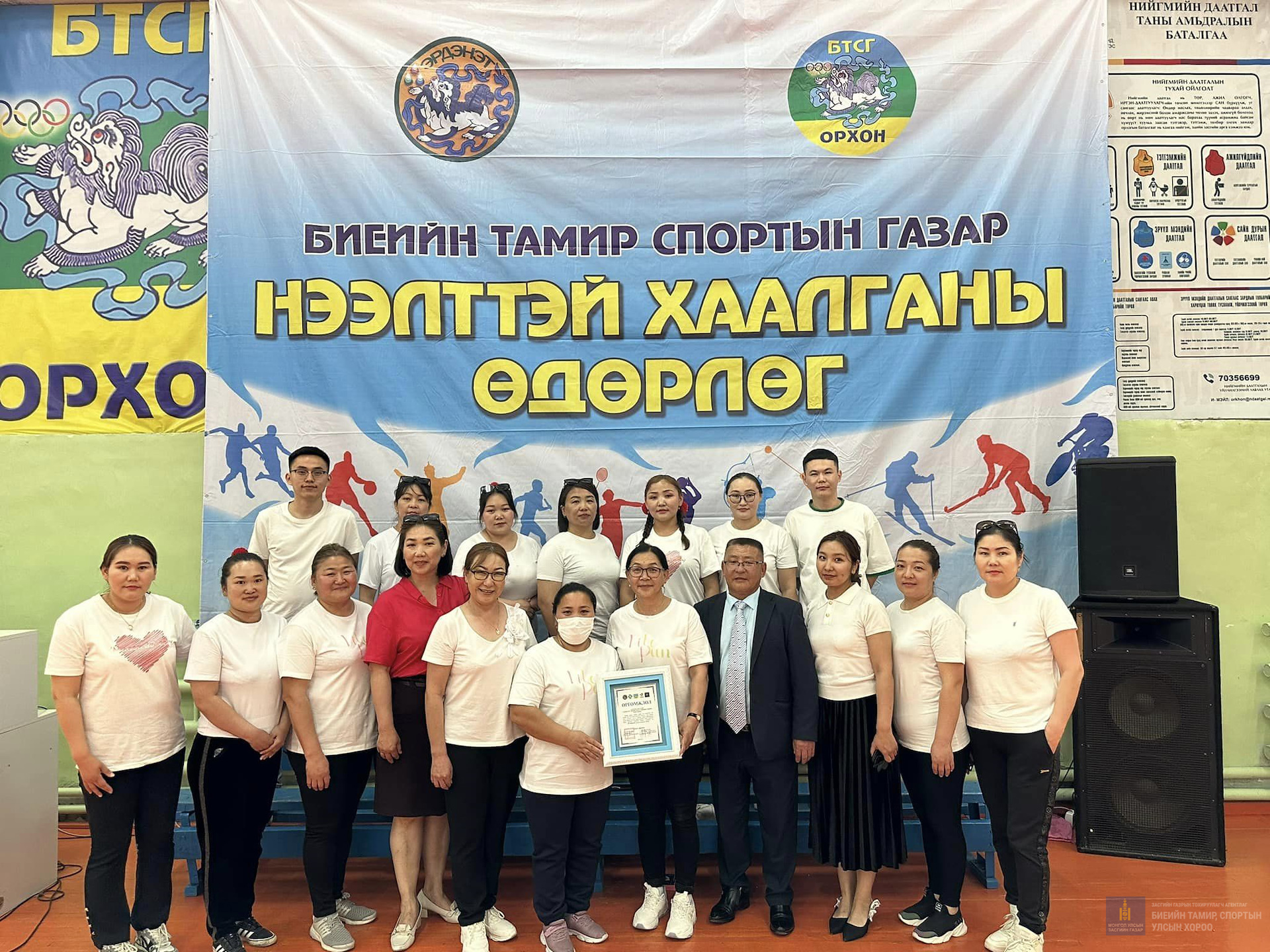 Мөн “Хичээллэе-Өрнүүлье-Хэвшье” аяны хүрээнд зохион байгуулсан “Ажлын байрны дасгал”-ын уралдаанд шалгарсан байгууллагуудын шагналыг гардуулж, шалгарсан байгууллагууд дасгалаа үзүүлж иргэдэд сурталчиллаа. Тус уралдааныг төрийн болон төрийн өмчит байгууллага, аж ахуйн нэгжүүдийн дунд 2 сарын турш зохион байгуулж, 33 байгууллагын давхардсан тоогоор 7384 ажилтан албан хаагчид оролцлоо. Уралдаанд шалгарсан байгууллагуудыг өргөмжлөл, мөнгөн шагналаар шагнасан.Үүнд: