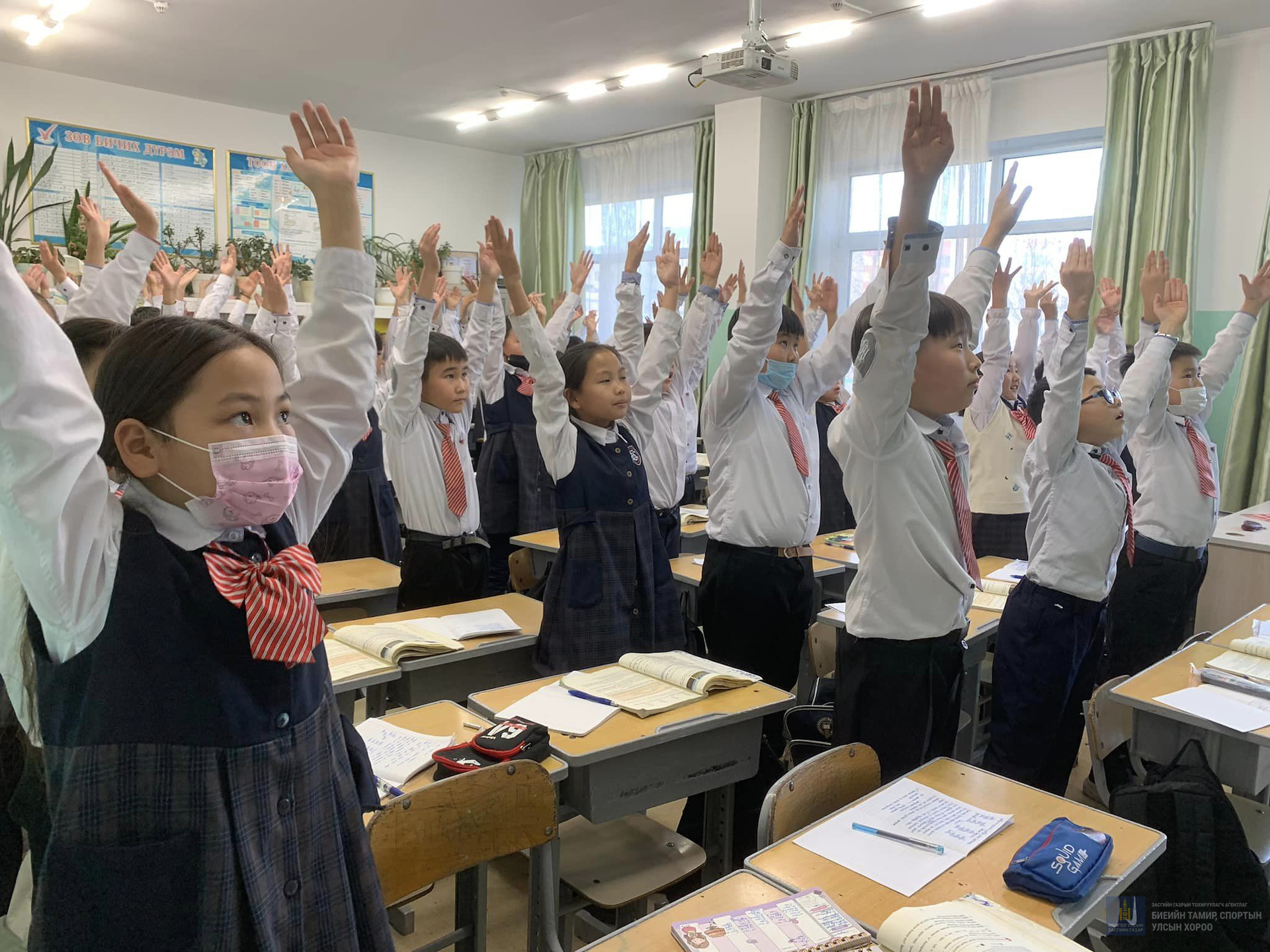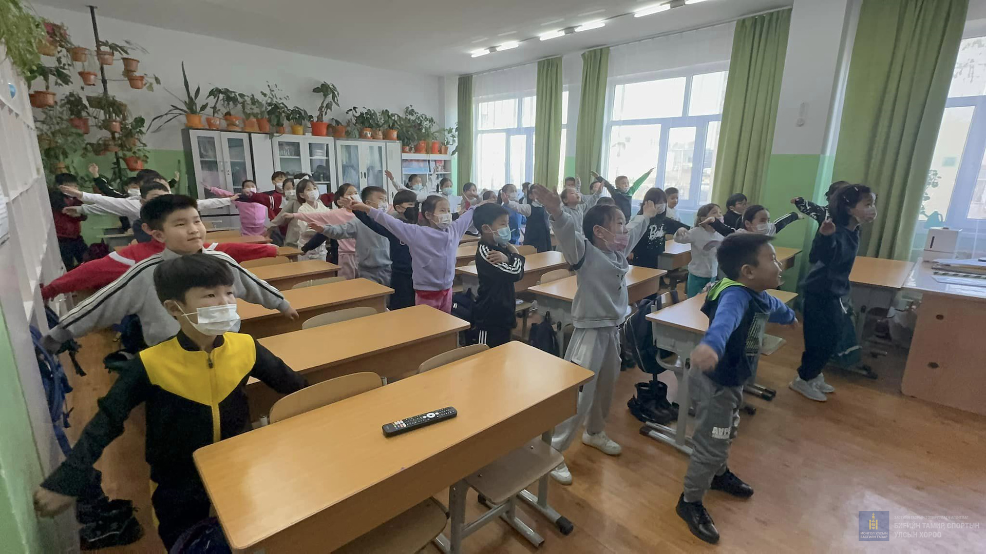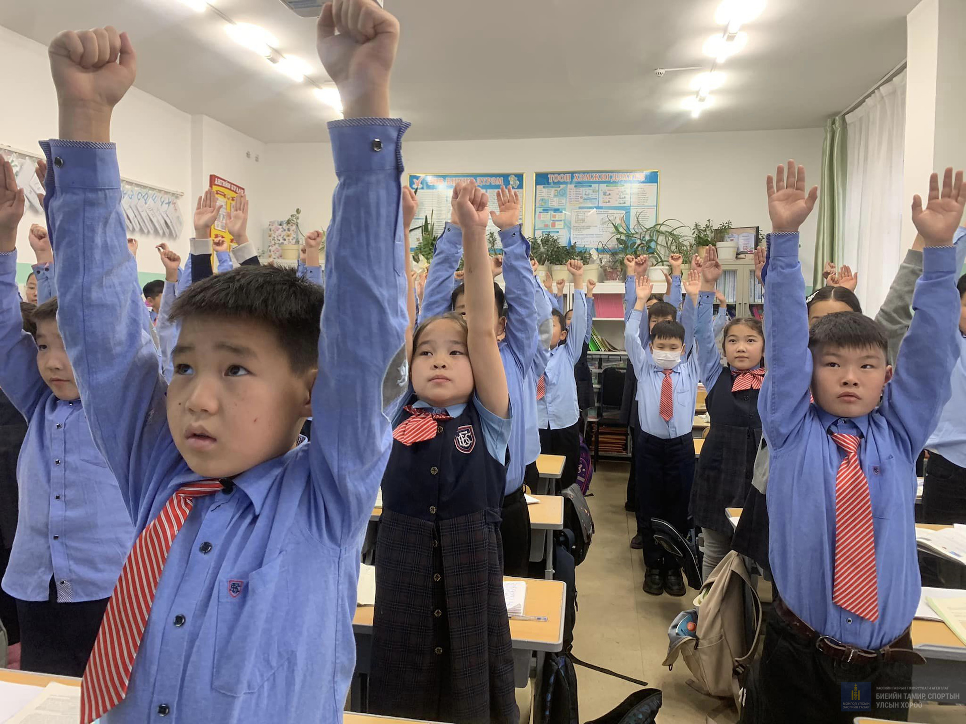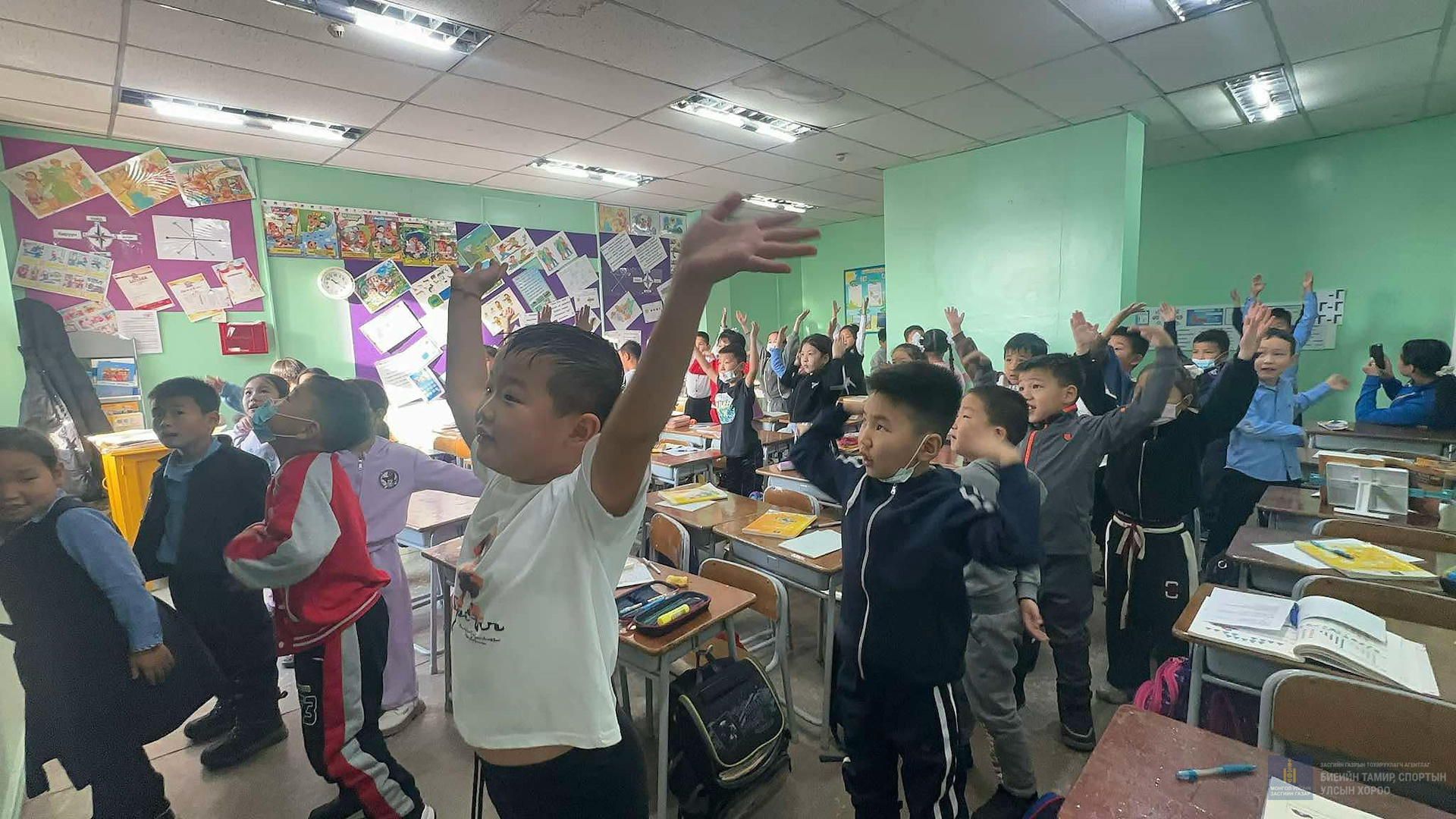 "Биеийн тамир, спортын бүтээлч сар 2024", "Хичээллэе-Өрнүүлье-Хэвшье" аяны хүрээнд ерөнхий боловсролын сургуулийн 2-5-р ангийн сурагчдын дунд "Нэг анги-Нэг өдөр" завсарлагааны дасгалын арга хэмжээг зохион байгуулж байна. Дасгалын арга хэмжээнд эхний 7 хоногт ерөнхий боловсролын 9