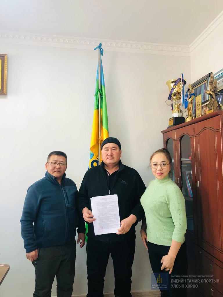 Биеийн тамир, спортын газрын дарга Д.Дэлгэрбаяр спортын холбоодтой гэрээгээ хийсээр байна.