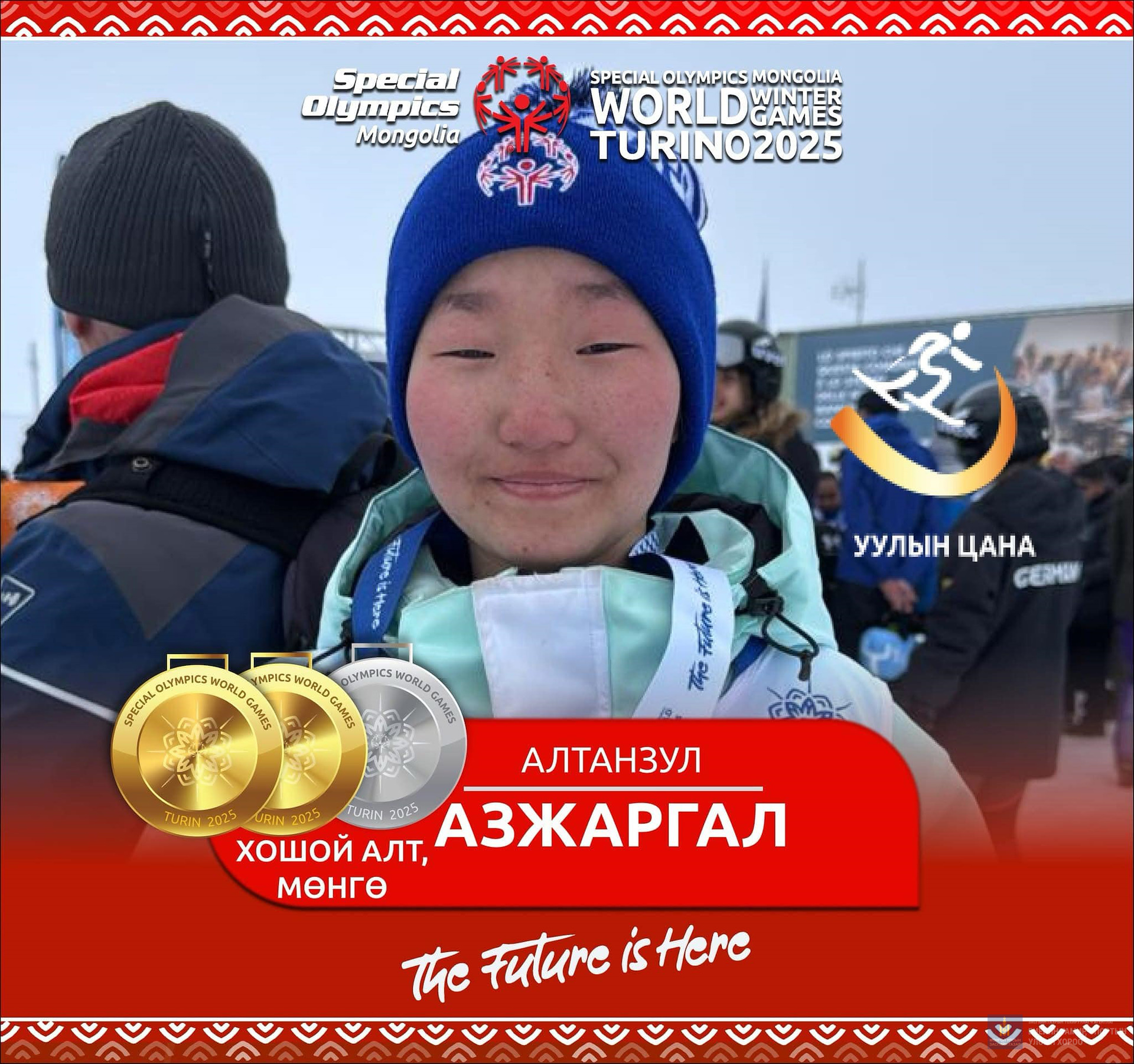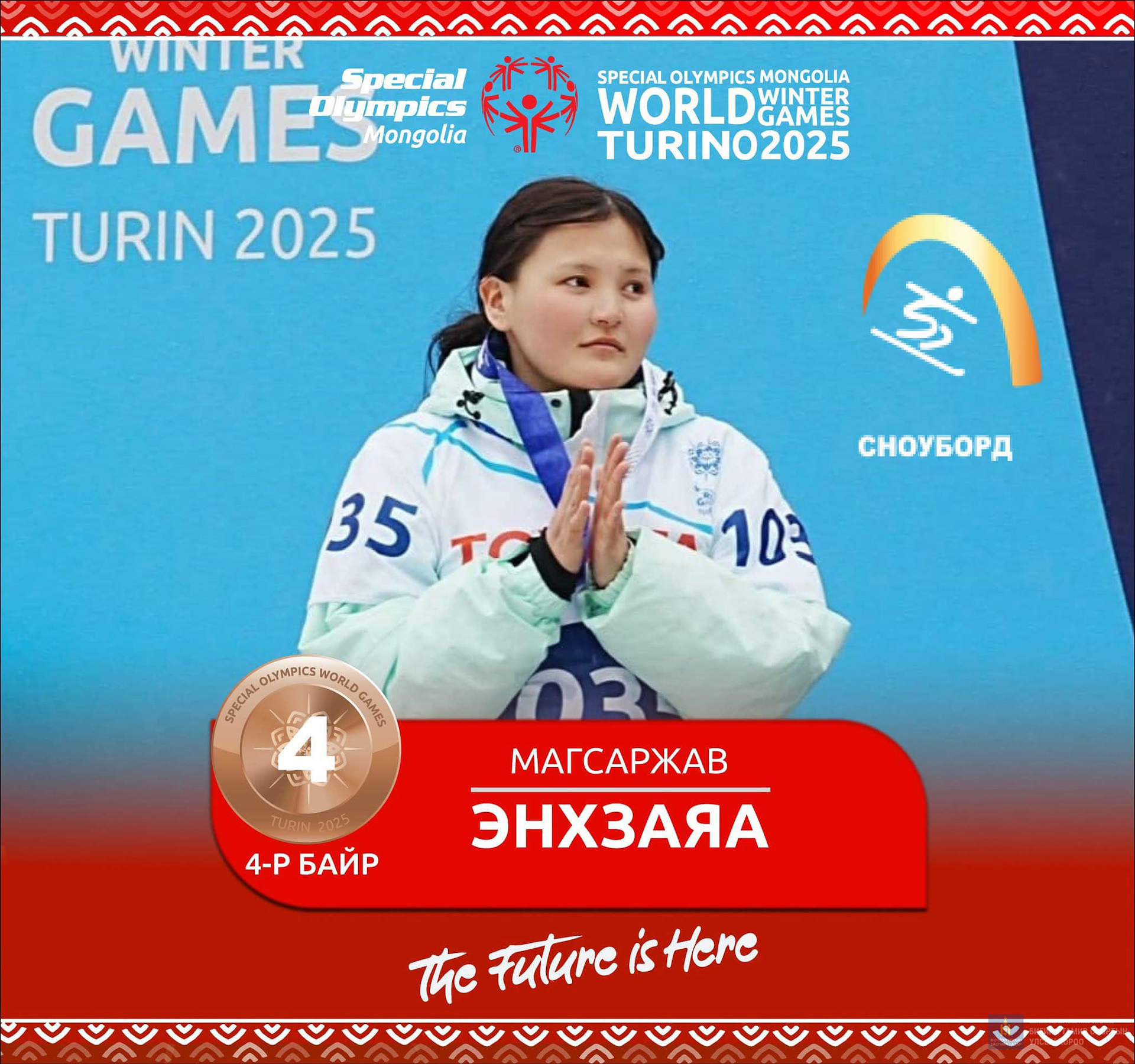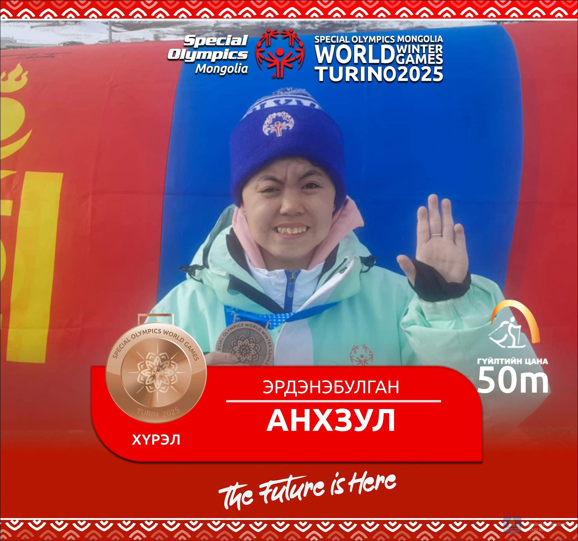 Харин Б.Бямба-Эрдэнэ цасны гуталтай 25 болон 50 метрийн зайн гүйлтийн төрөлд хошой мөнгөн медаль хүртсэн бол А.Азжаргал уулын цана, Б.Мөнх-Эрдэнэ бүжгийн ганцаарчилсан төрөлд, А.Алтан-Очир сноуборд, Ө.Елмырза цасны гуталтай 100 метрийн зайд, Б.Мөнх-Эрдэнэ, Я.Мягмарсүрэн нар бүжгийн хосын төрөлд, П.Хатансайхан цасны гуталтай 400 метрийн зайд, А.Идрээ цасны гуталтай гүйлтийн төрөлд мөнгөн медаль хүртлээ.